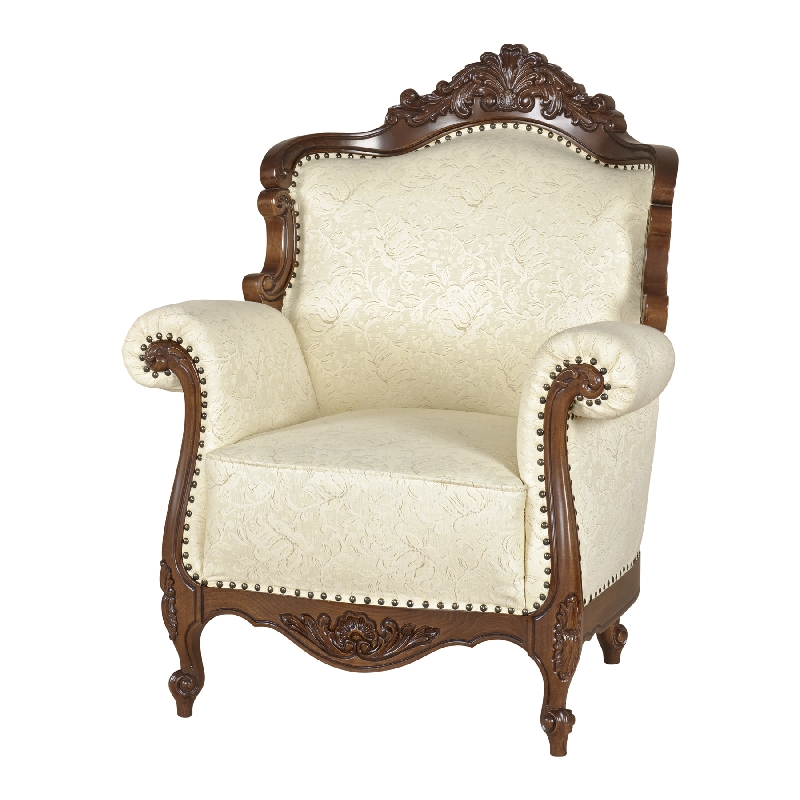 Элегантное кресло с ярко выраженным классическим стилем из коллекции Могадор от фабрики Мобекс | Mobex имеет прочную конструкцию из натурального дерева и высококачественный обивочный материал, который предоставляется на выбор из каталога производителя, что позволяет выбрать наиболее подходящий вариант под ваш интерьер.