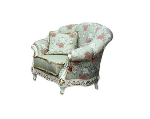 Каркас кресла изготавливается из массива дерева, что придает ему надежность и долговечность, а в качестве обивочного материала используется износостойкая ткань или натуральная кожа.