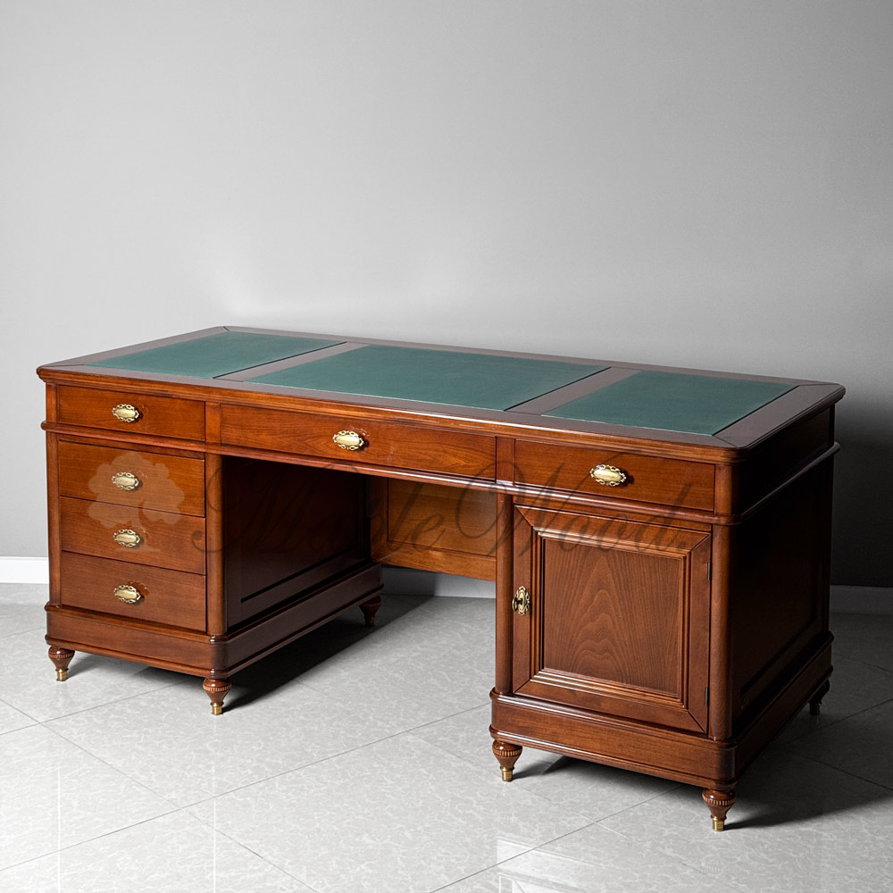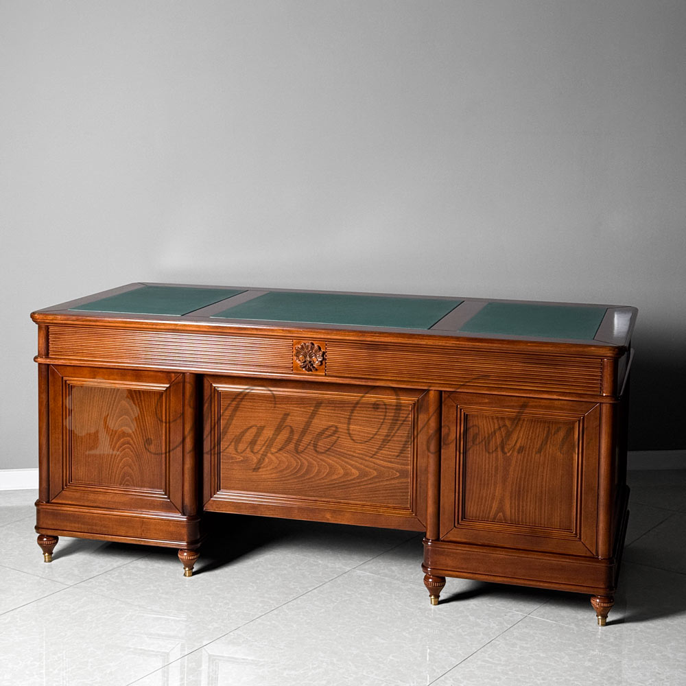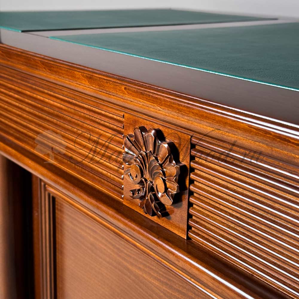 Письменный стол выполнен в итальянском стиле из натурального массива дерева, а главной его особенностью является лицевая отделка с двух сторон, что позволяет разместить стол по центру комнаты.