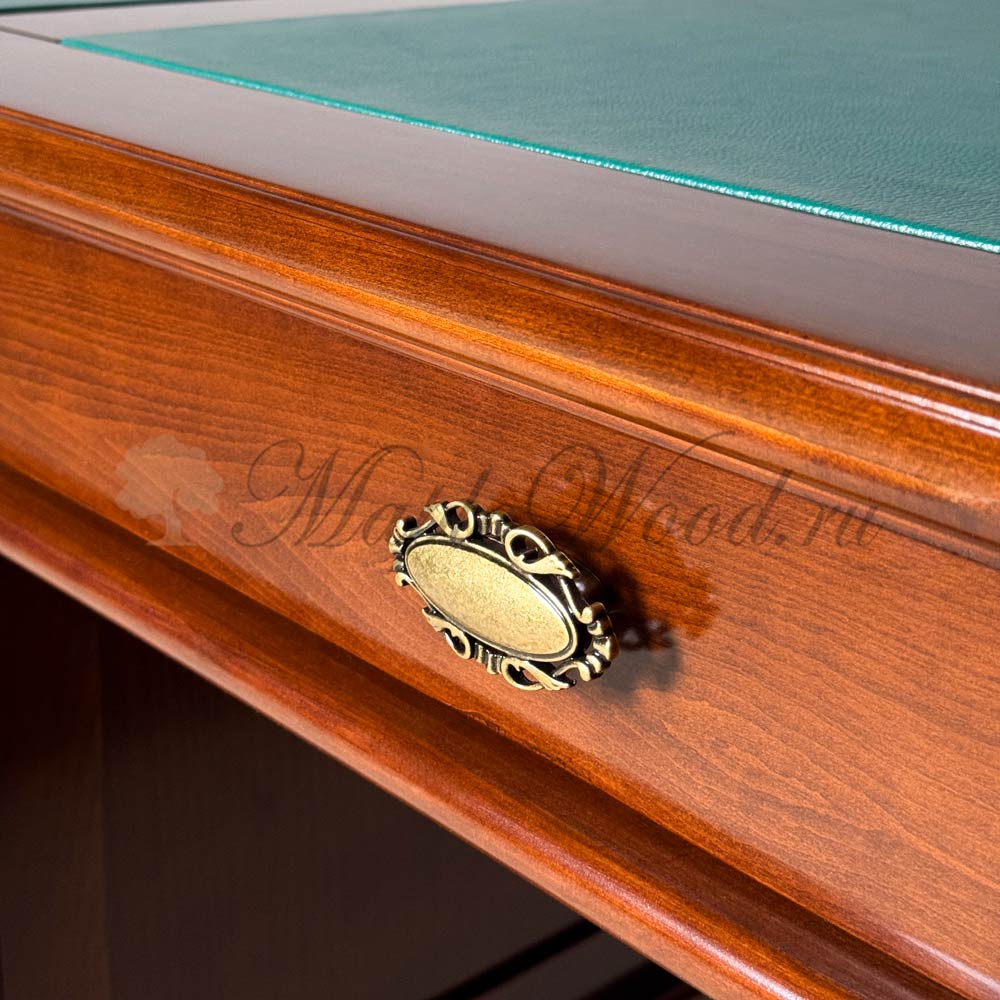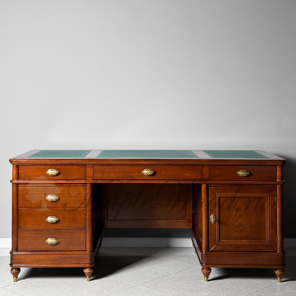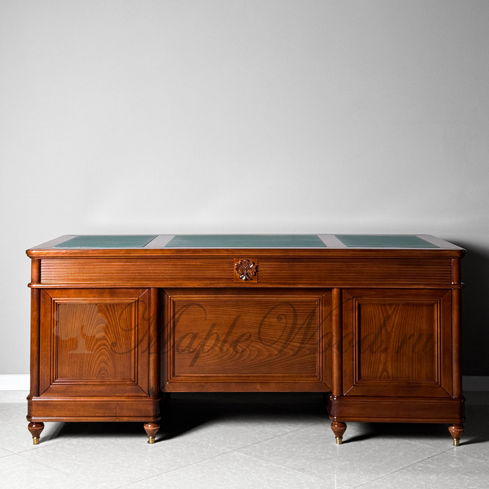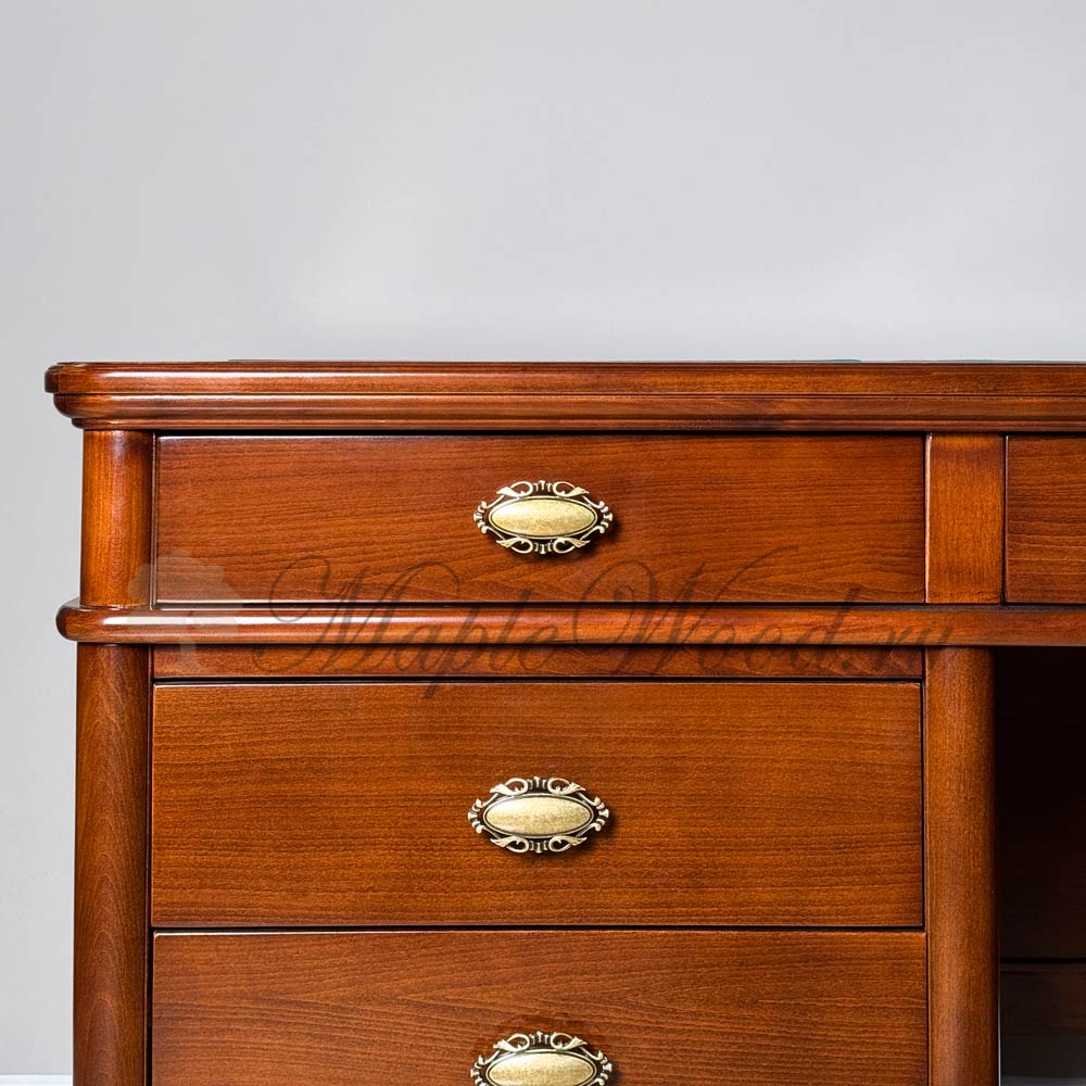 Письменный стол выполнен в итальянском стиле из натурального массива дерева, а главной его особенностью является лицевая отделка с двух сторон, что позволяет разместить стол по центру комнаты.