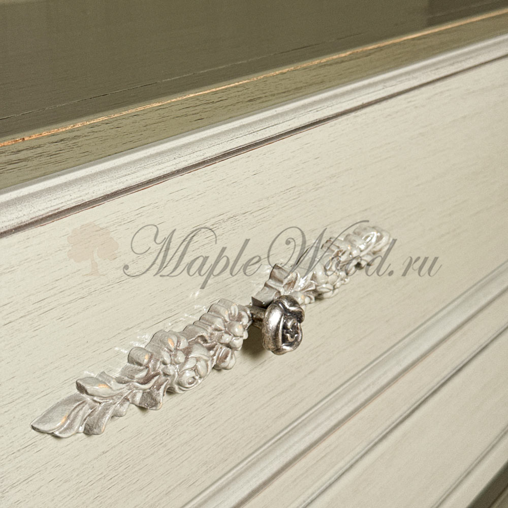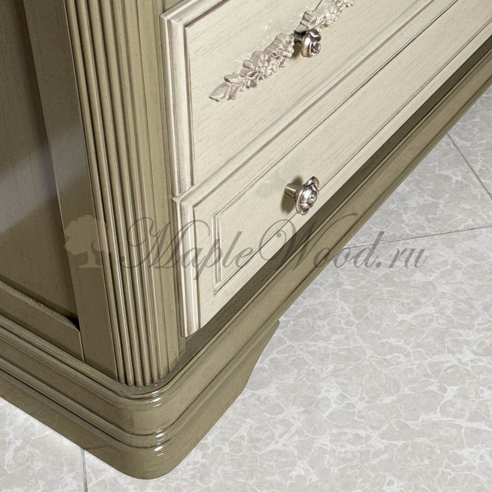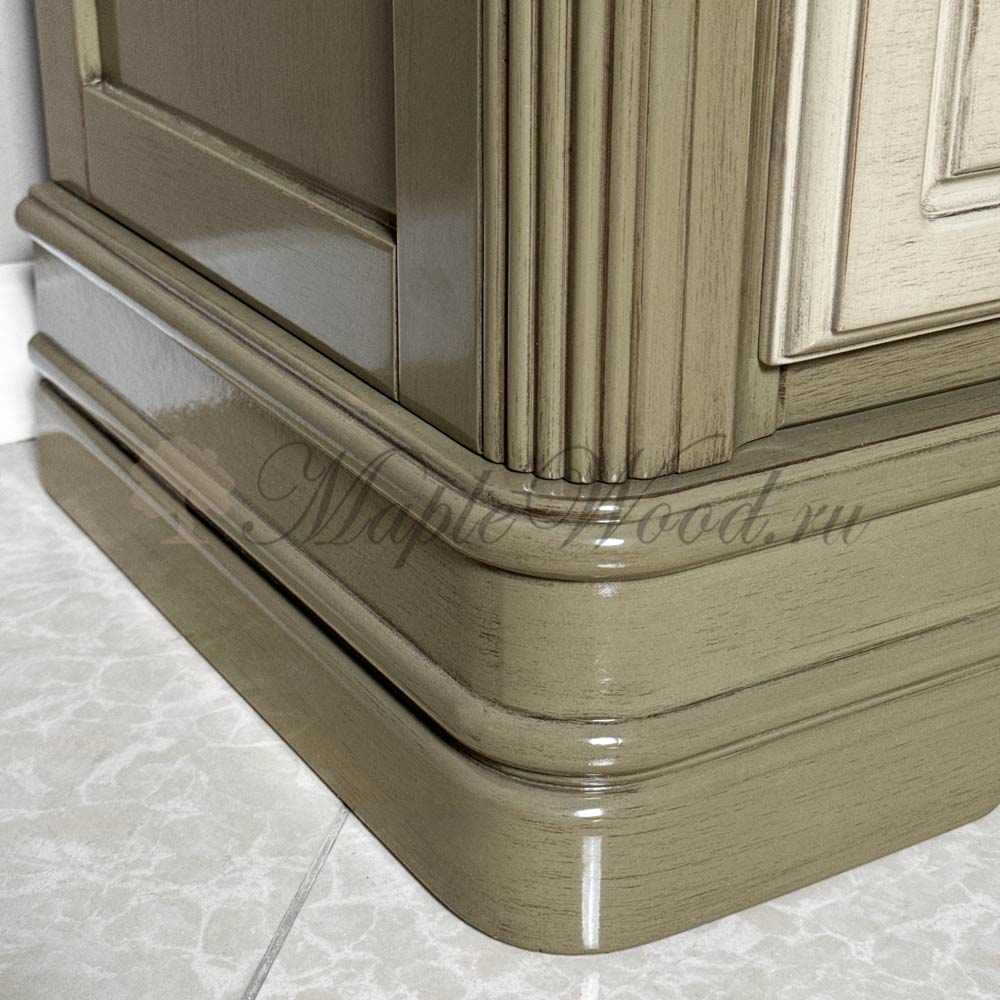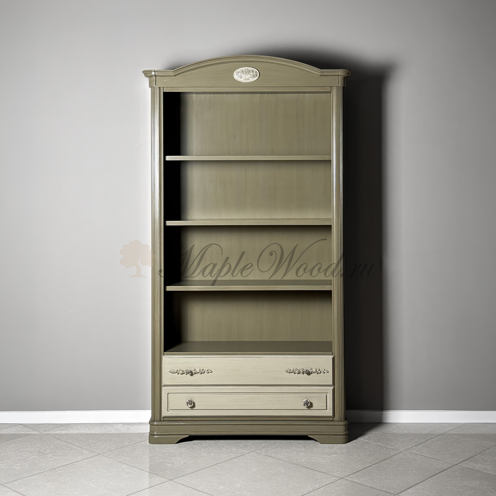 Этажерка для гостиной из коллекции «Артемида» от фабрики Monte Cristo Mobili выполнена в неоклассическом стиле из массива дерева в нестандартном оливковом оттенке.