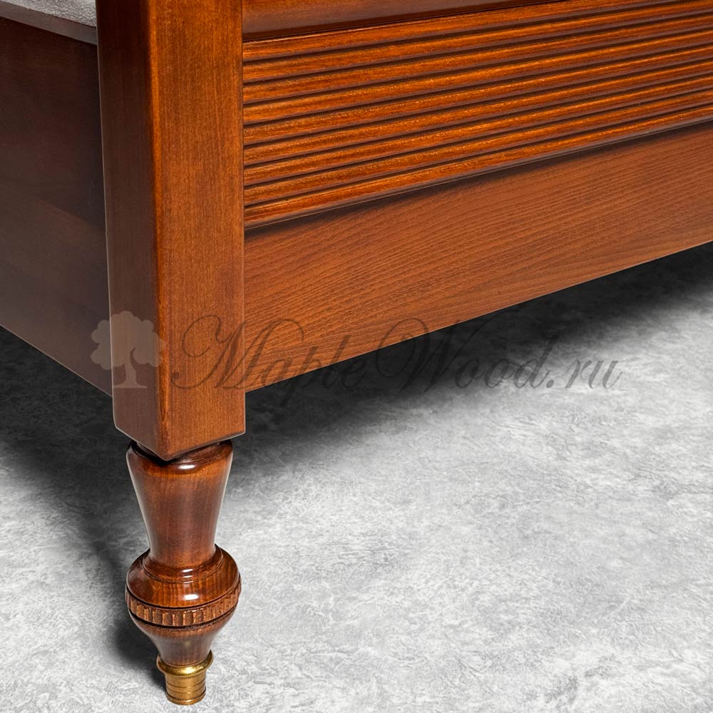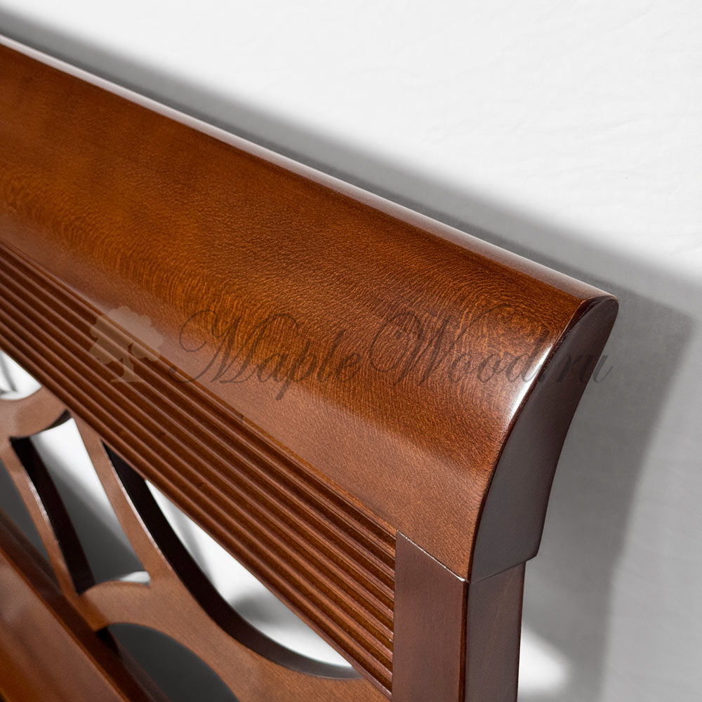 Кровать из коллекции Бурбон от фабрики Monte Cristo Mobili выполнена из натурального массива дерева в стандартной отделке "орех" и декорирована акцентной фрезеровкой и резной вставкой на изголовье.