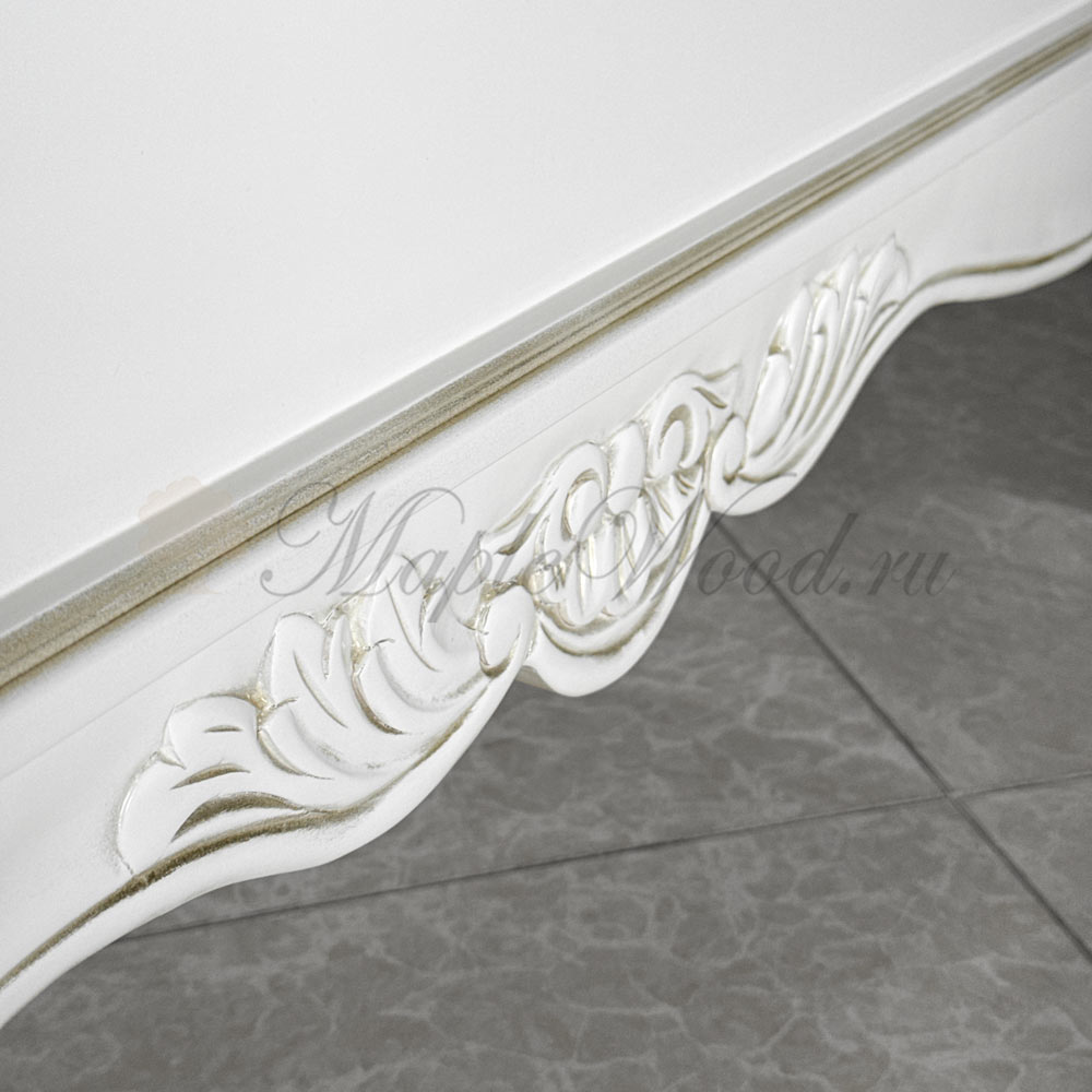 Двуспальная кровать из коллекции Палермо от фабрики Монте Кристо Мобили | Monte Cristo Mobili выполнена из массива дерева в светлом оттенке «слоновая кость» и украшена резными элементами, декорированными золотой патиной.