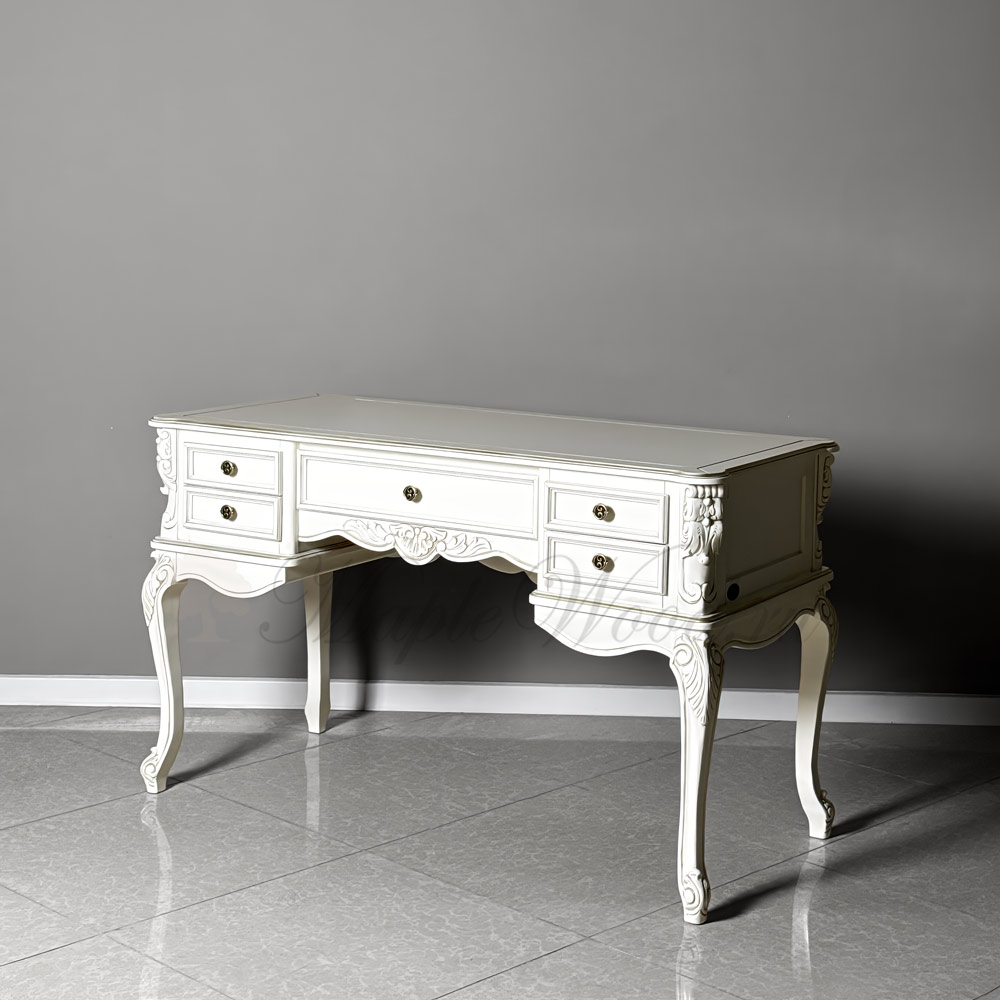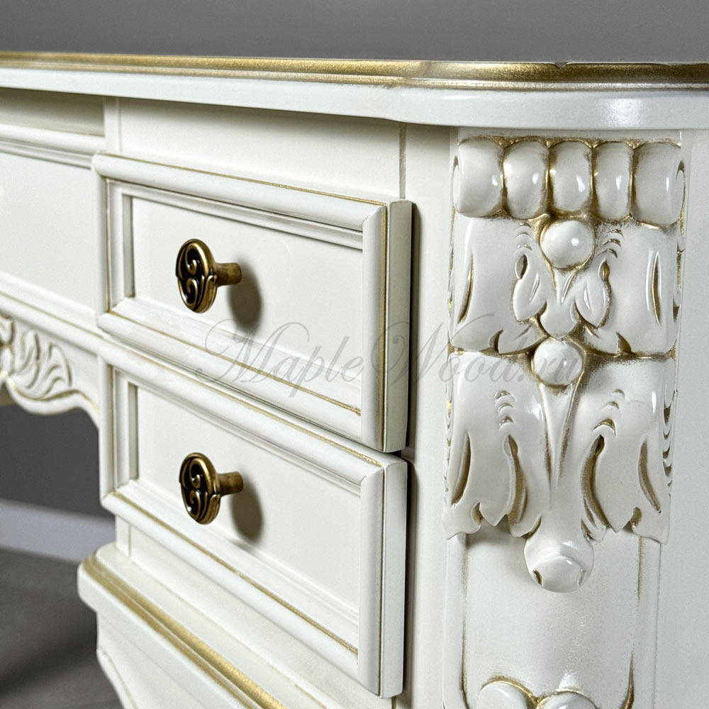 Туалетный столик из коллекции Палермо от фабрики Mонте Кристо Мобили | Monte Cristo Mobili имеет пять выдвижных ящиков, которые помогут упорядочить косметические принадлежности и аксессуары.