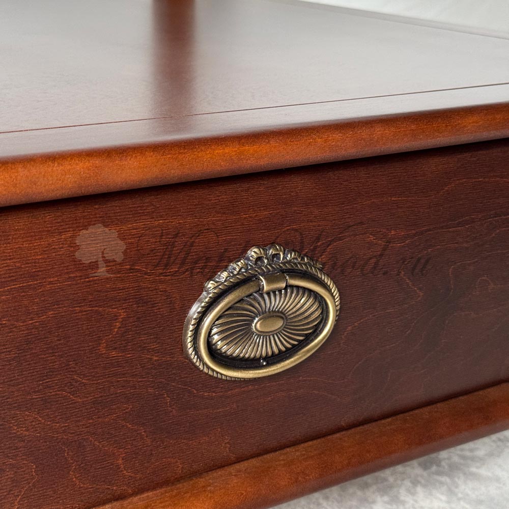 Журнальный стол для гостиной, выполненный из массива карельской березы и произведённый в Беларуси, является репликой известной коллекции Мария Сильва от румынского производителя Monte Cristo Mobili.