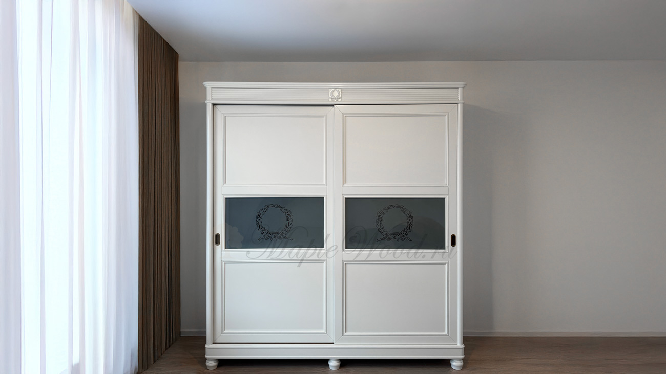 Шкаф-купе от спального гарнитура Мария Сильва выполнен в итальянском дизайне из натурального дерева и может быть исполнен не только в светлом оттенке слоновая кость, но и в других цветовых решениях из каталога фабрики.