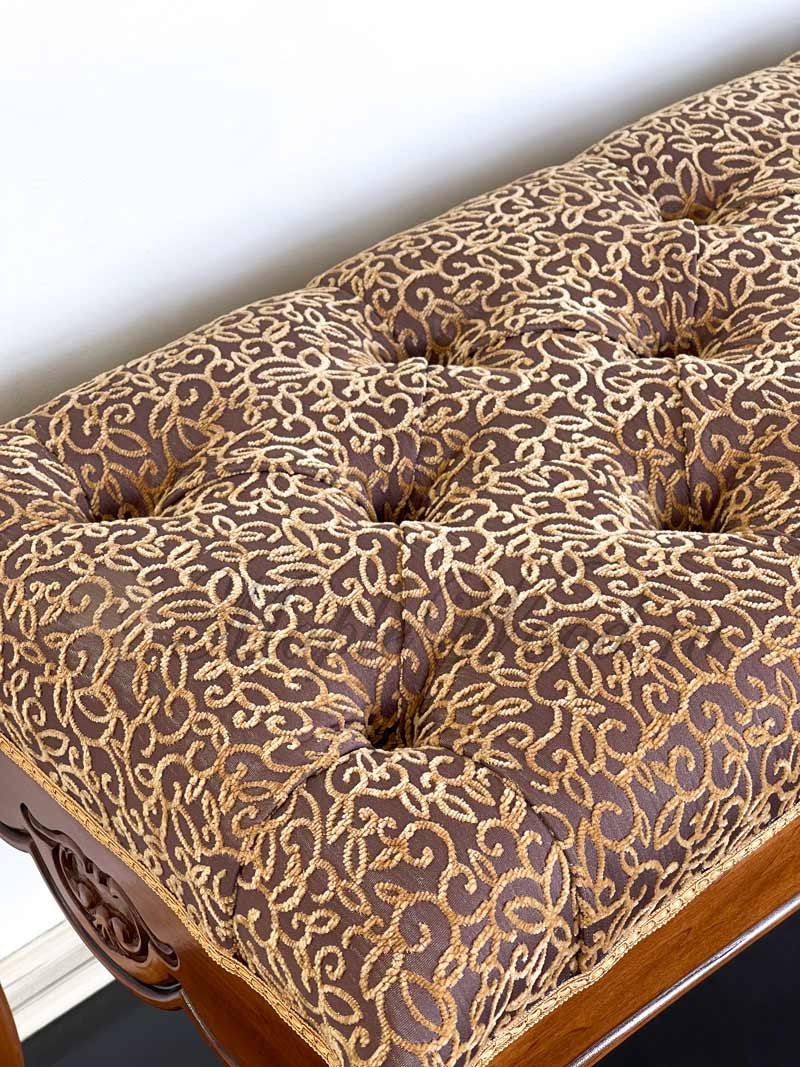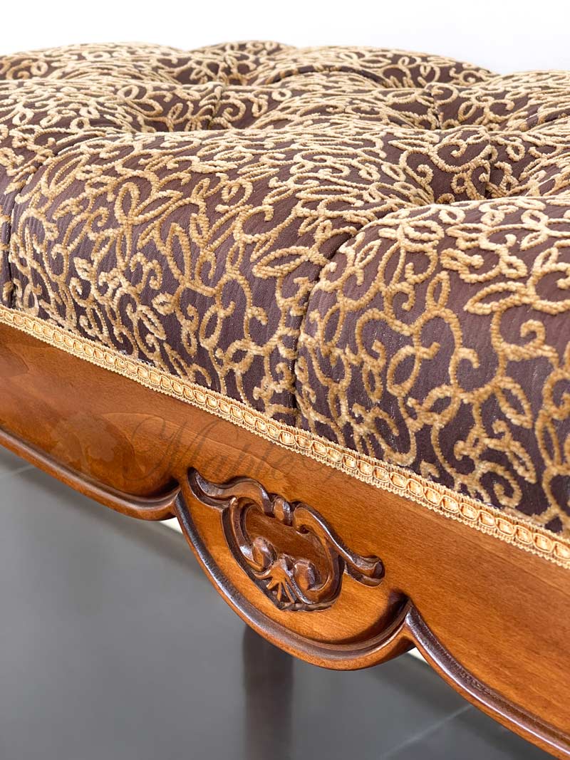 Банкетка Аркад от фабрики Simex гармонично дополнит кровать из одноимённой коллекции и станет акцентным элементом в классическом интерьере спальни.