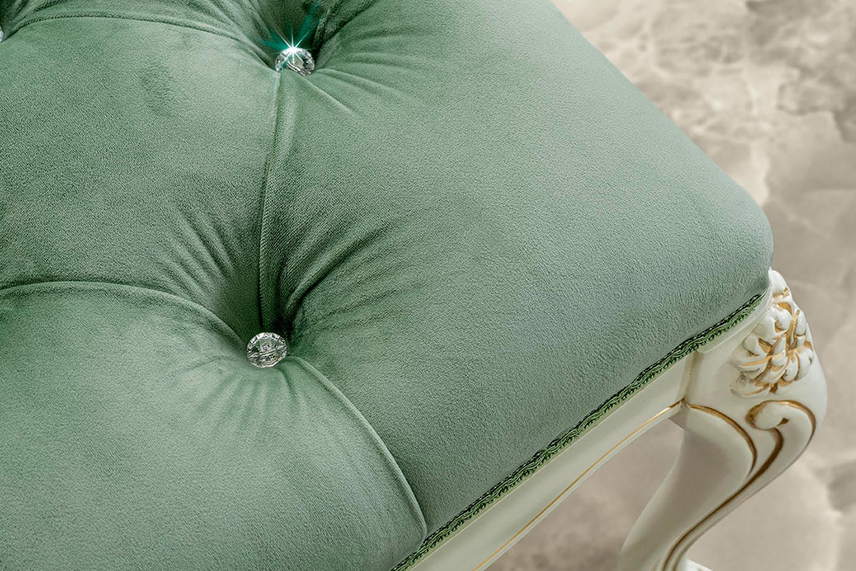 Элегантный пуф для спальни из коллекции Жасмина от фабрики Simex выполнен в классическом стиле с использованием натурального дерева и высококачественного обивочного материала, который предоставляется на выбор из каталога производителя: ткань или натуральная кожа.