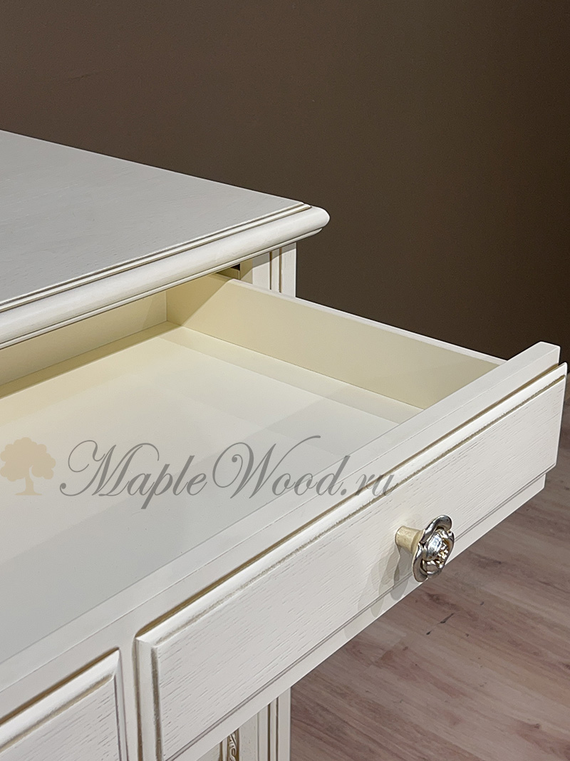 Комод оборудован четырьмя выдвижными ящиками, которые оснащены системой плавного закрывания.