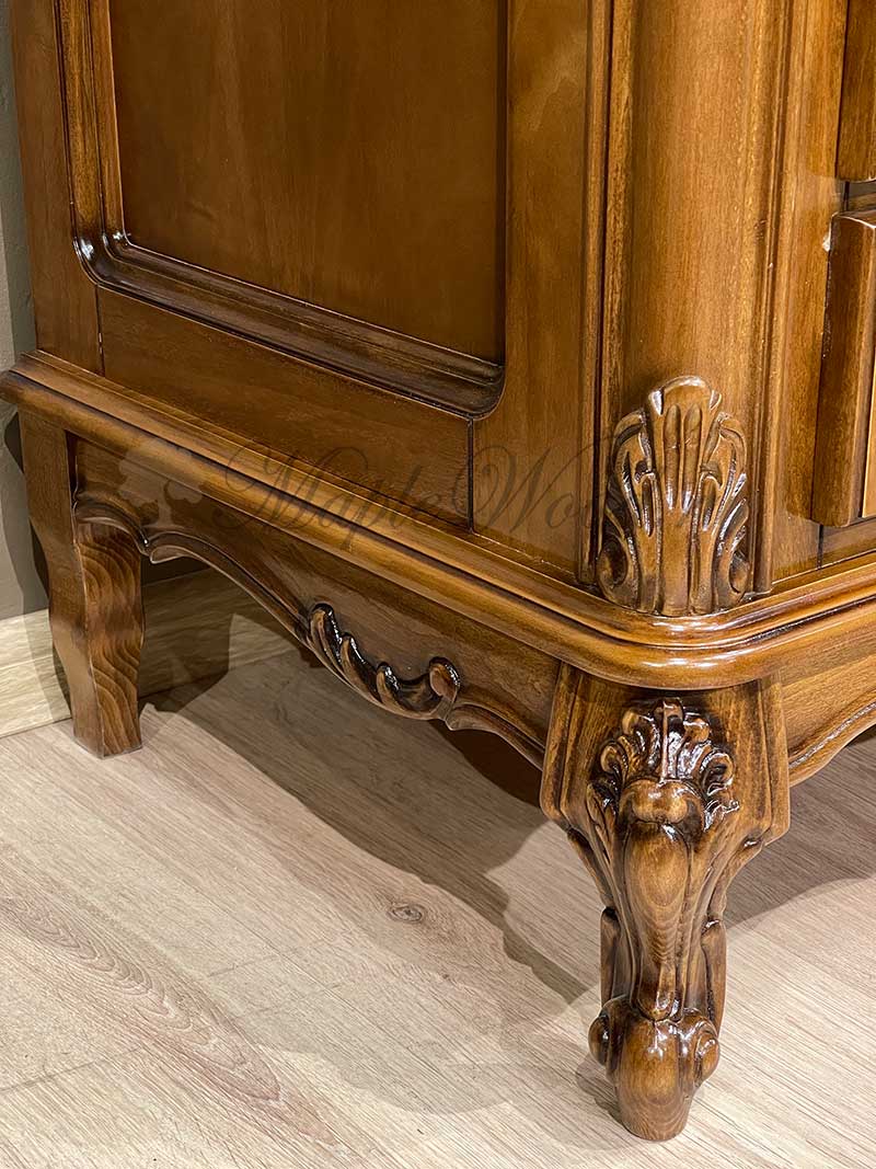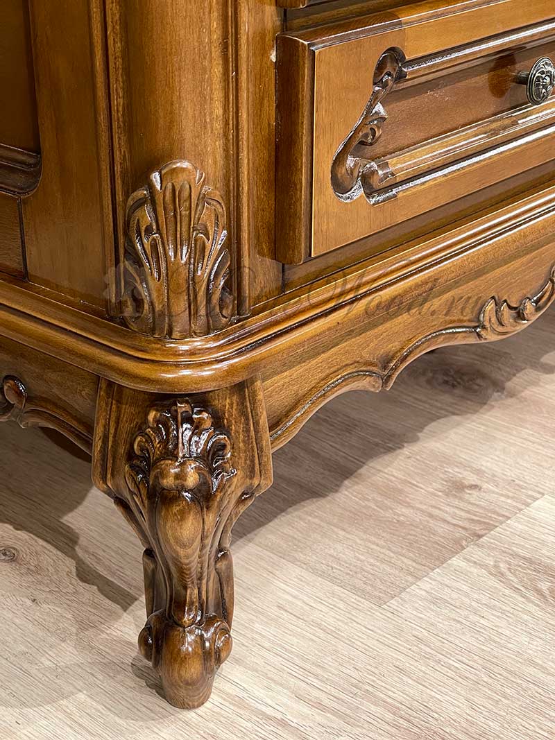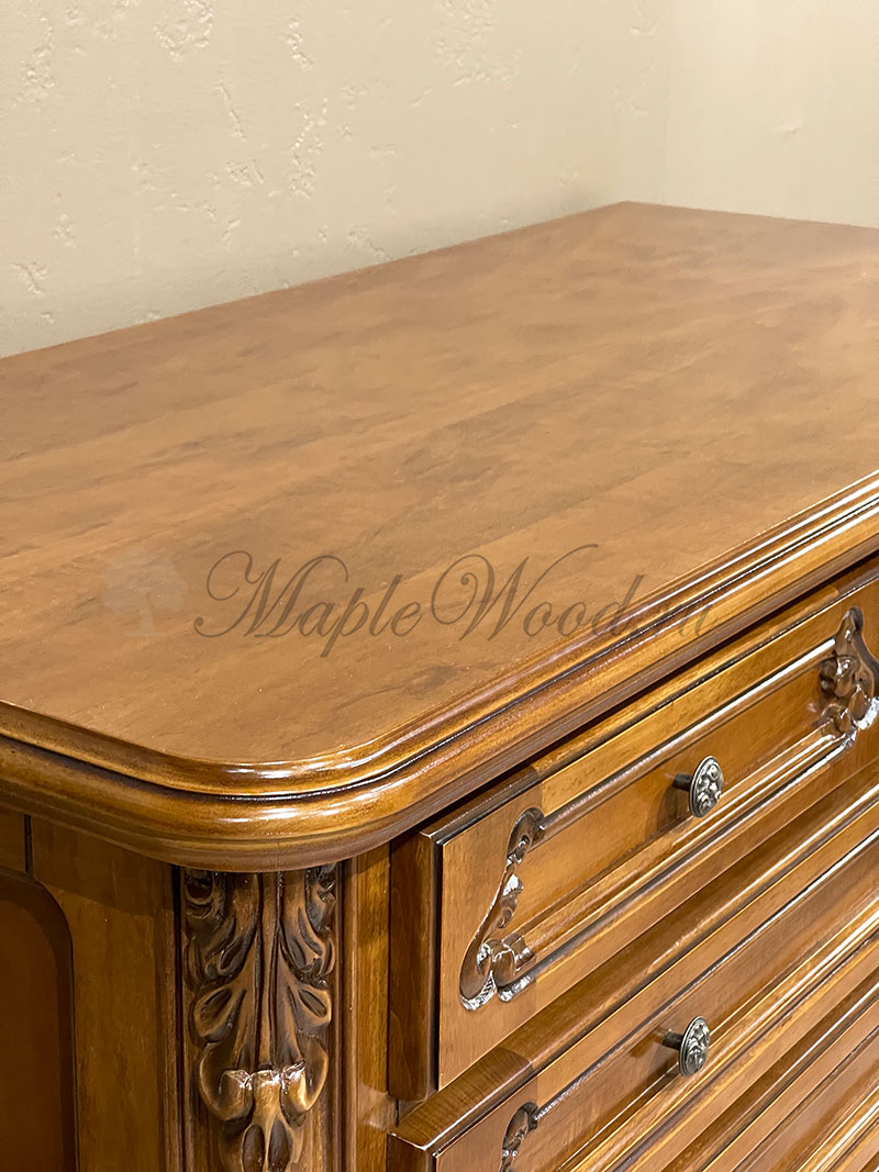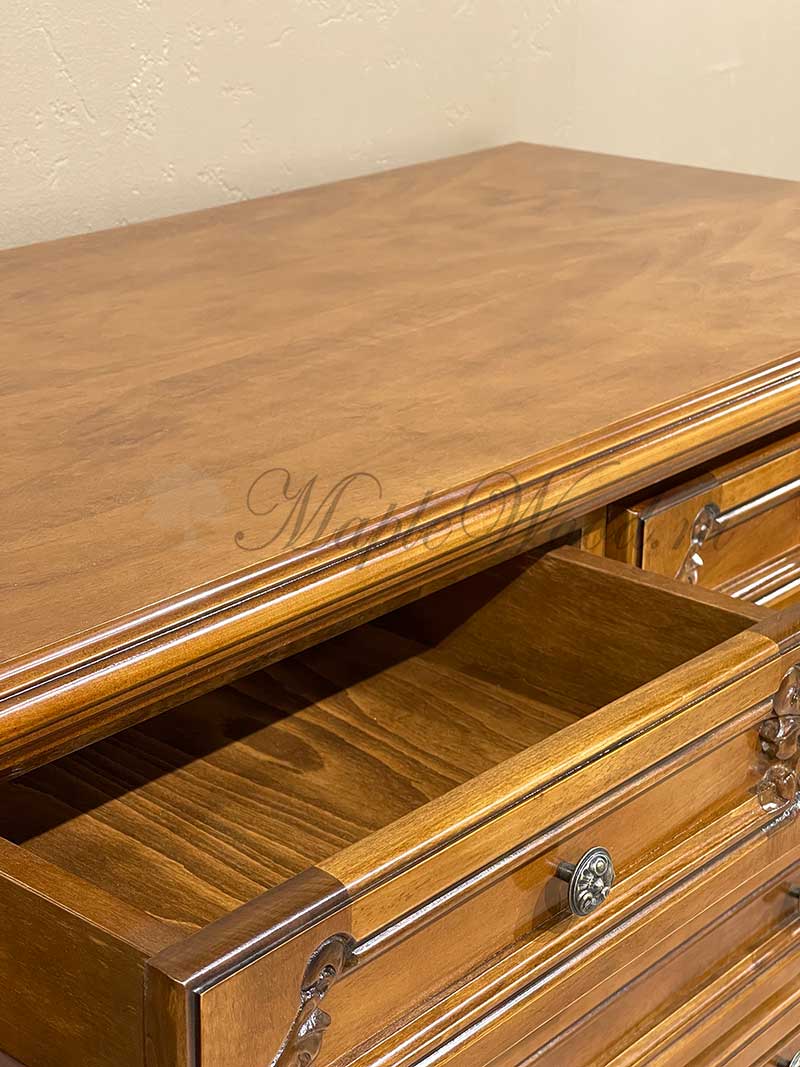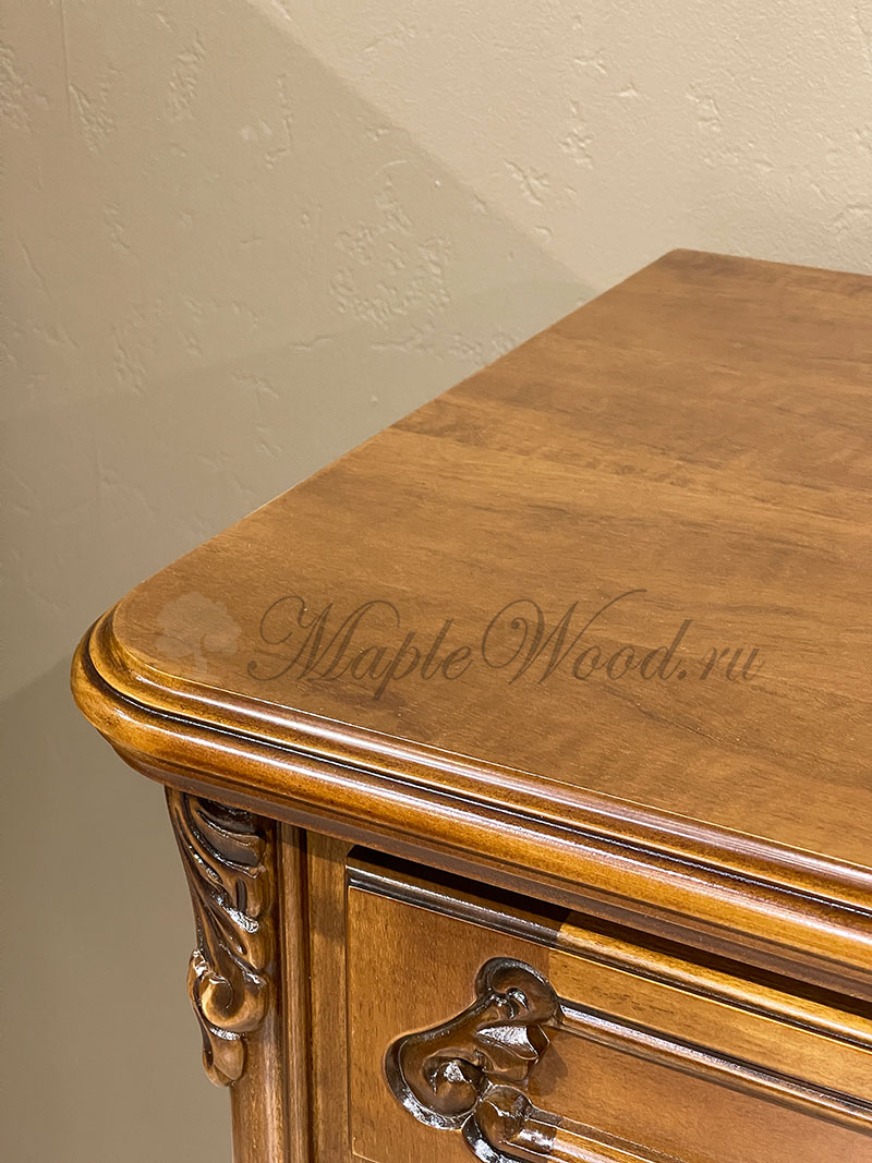 Бельевой комод из коллекции Роял от фабрики Simex выполнен по всем канонам классического стиля из натурального дерева в отделке орех и декорирован искусной резьбой ручной работы.