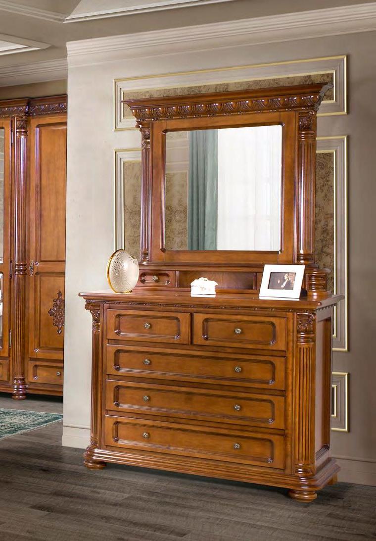Комплект мебели для спальни из коллекции Венеция Люкс от фабрики Simex состоит из 2-х предметов и включает: комод для белья и одежды и прямоугольное зеркало с небольшими ящиками для хранения различных аксессуаров и украшений.
