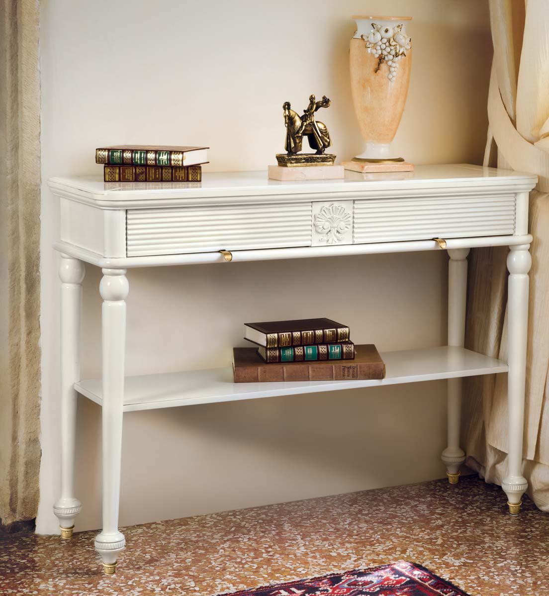 Консоль выполнена в итальянском стиле из натурального дерева и может быть исполнена как в светлом оттенке слоновая кость, так и в других цветовых решениях из каталога фабрики.