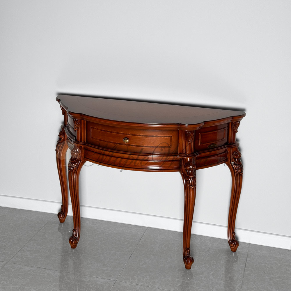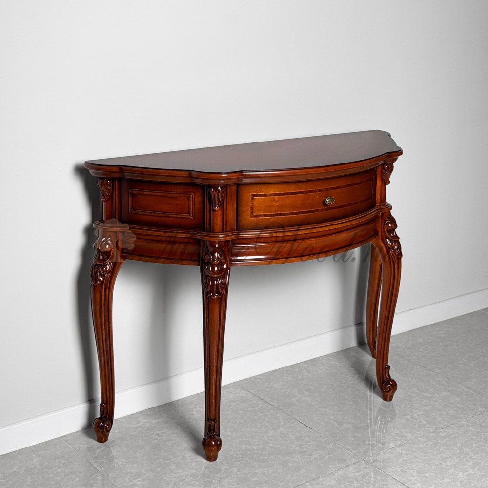 Консоль из натурального массива дерева от фабрики Simex из коллекции Фирензе отличается особой элегантностью и изяществом, благодаря своей округлой форме с изогнутыми фасадами и плавными линиями.