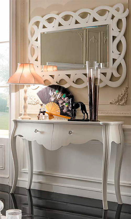 Консоль из коллекции Франческо - модель на изогнутых ножках, оборудованная двумя выдвижными ящиками.