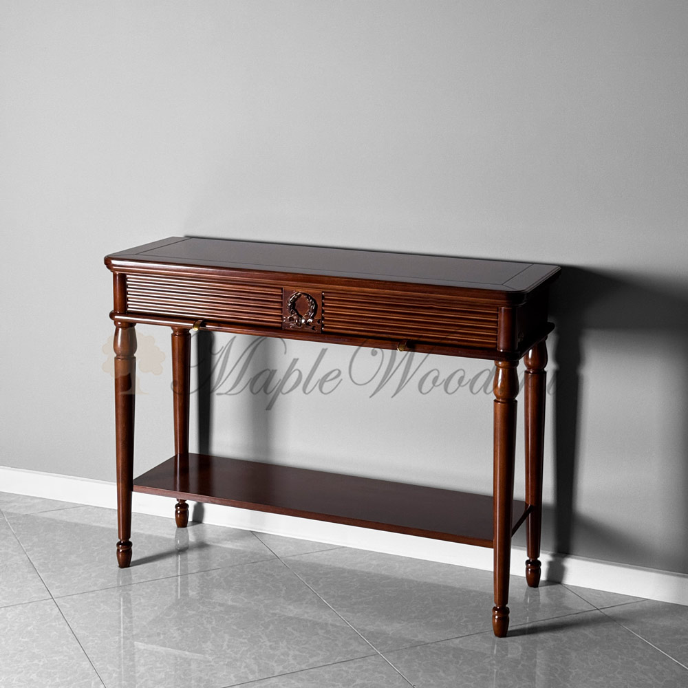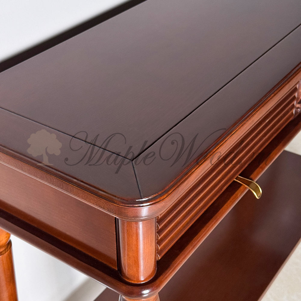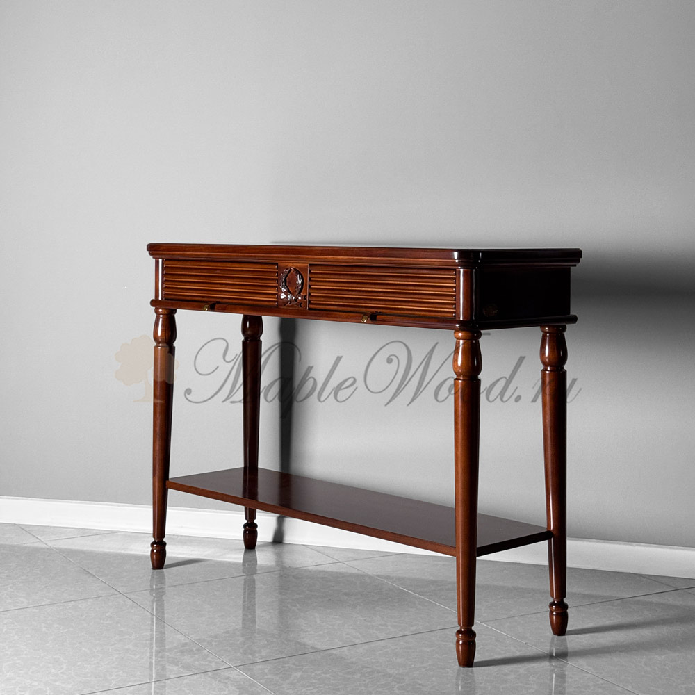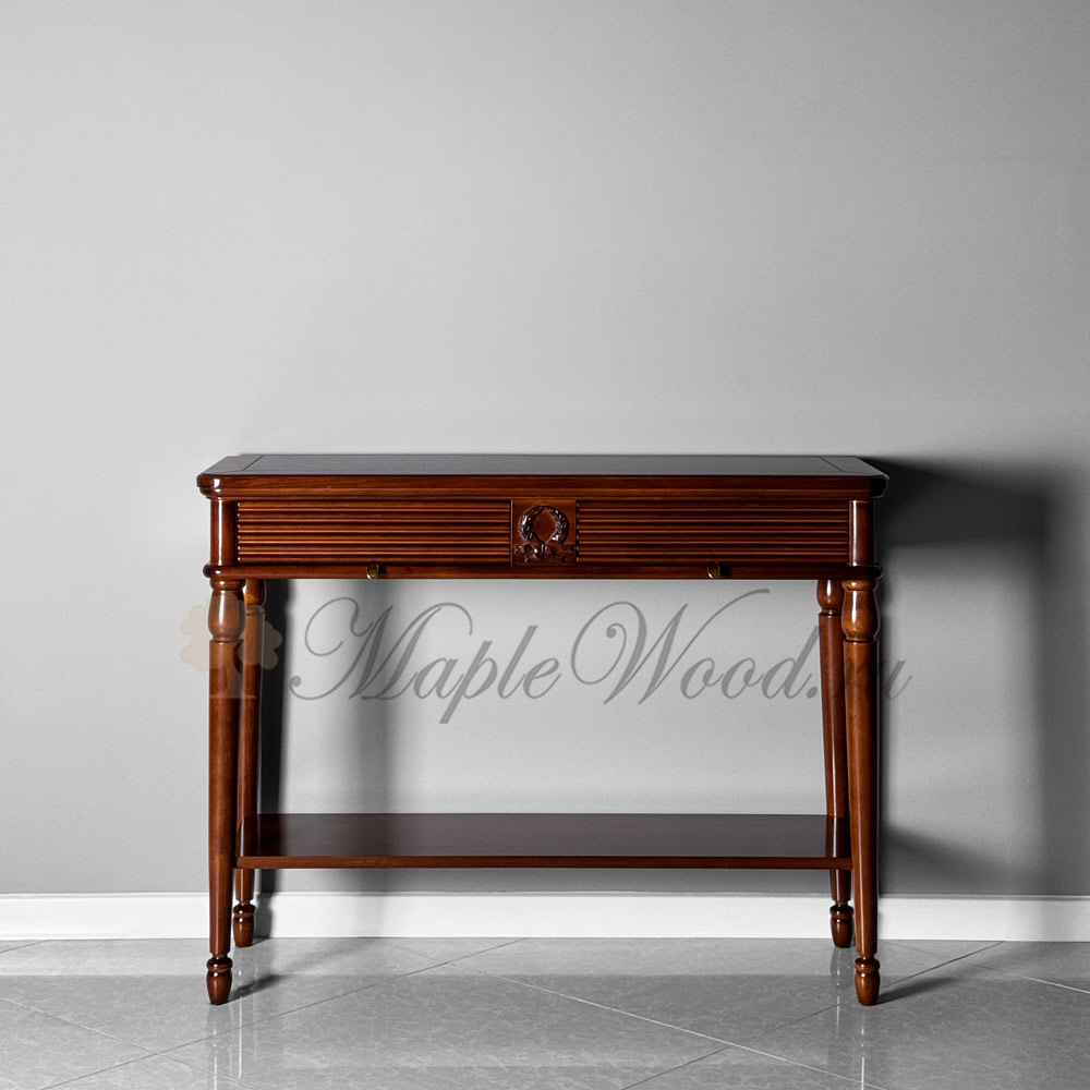 Консоль выполнена в итальянском стиле из натурального массива дерева и может быть исполнена как в стандартной отделке орех, так и в других цветовых решениях из каталога фабрики.