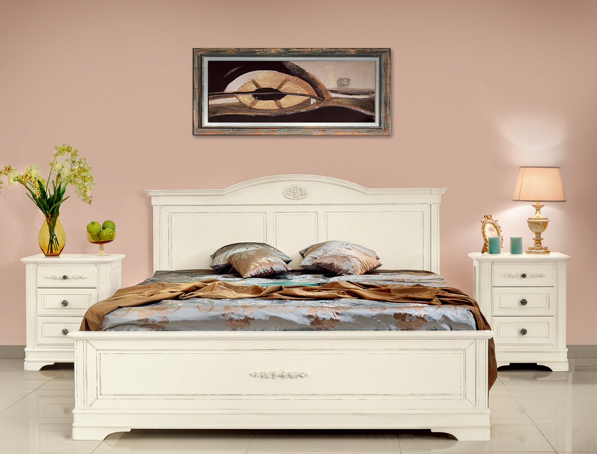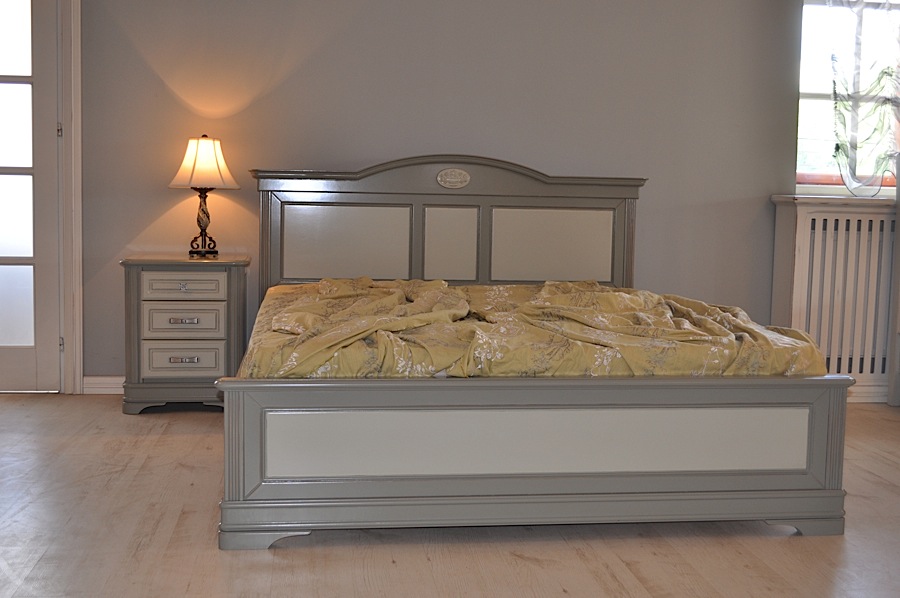 Двуспальная кровать из коллекции Артемида от фабрики Monte Cristo Mobili сочетает в себе натуральный материал, классическую форму и широкую палитру оттенков: слоновая кость, серый, оливковый и синий.