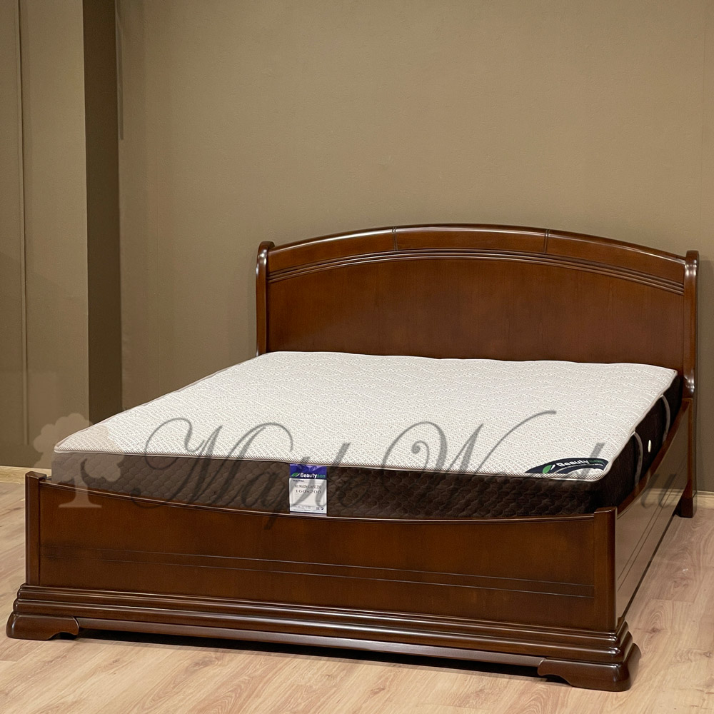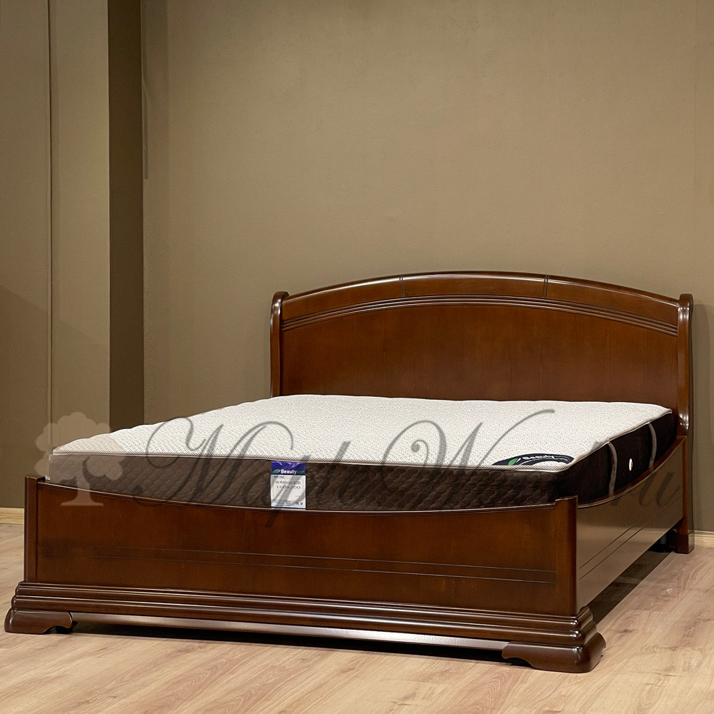 Описание Двуспальная кровать из коллекции Элеганс от фабрики Мобекс | Mobex выполнена из массива дерева бука в тёмной отделке орех, сочетая в себе сдержанную форму и строгий стиль классики.