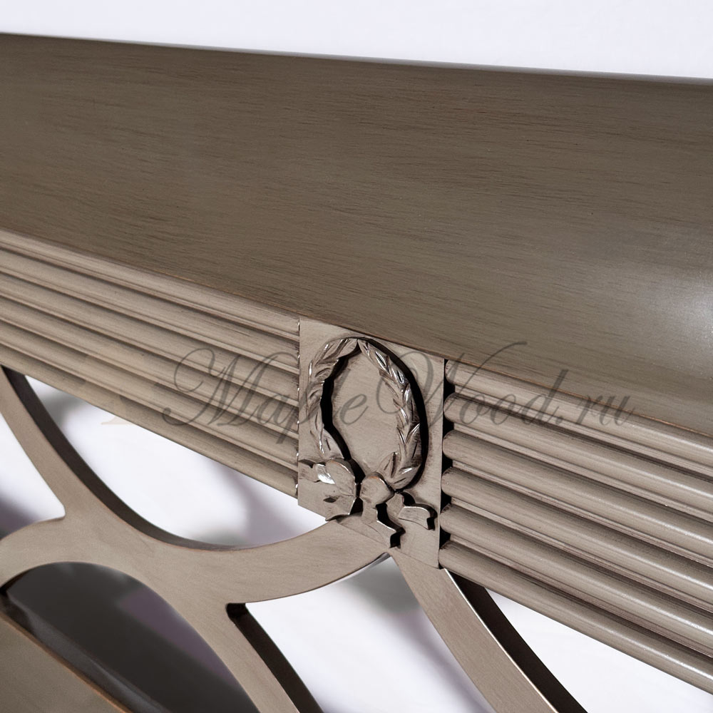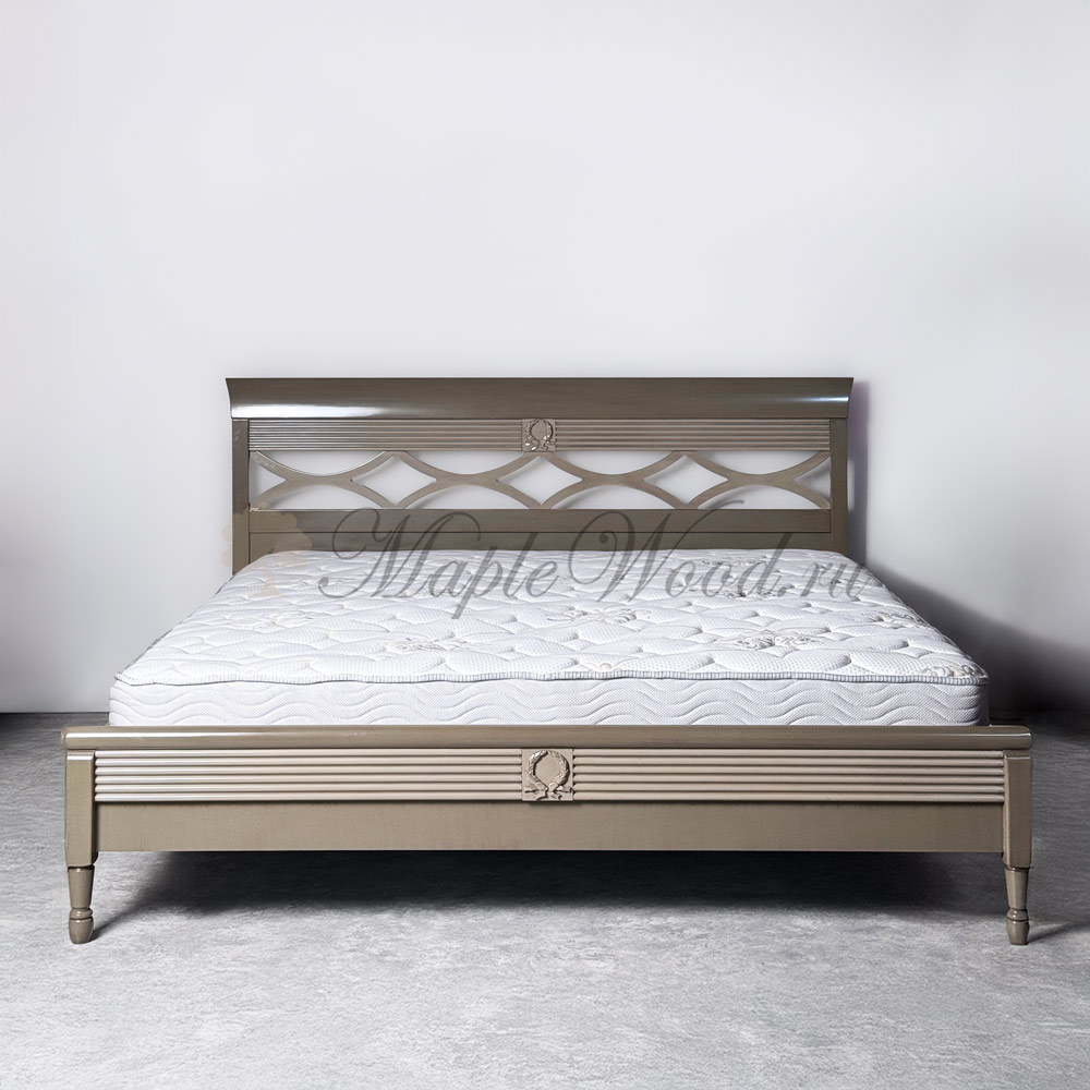 Двуспальная кровать Мария Сильва от фабрики Monte Cristo Mobili - лаконичная модель с резным изголовьем, выполненная в итальянском стиле из массива дерева в оригинальном серо-зелёном оттенке.