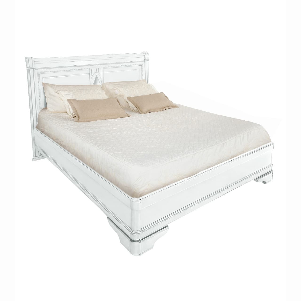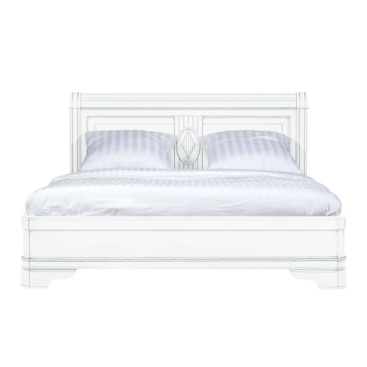 Двуспальная кровать из коллекции Палермо от фабрики Тимбер выполнена в классическом стиле из шпонированного МДФ с элементами из массива дерева и декорирована серебряной патиной, которая подчеркивает акцентные детали изделия.