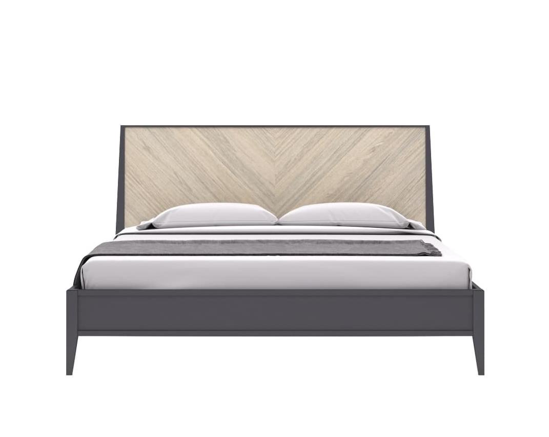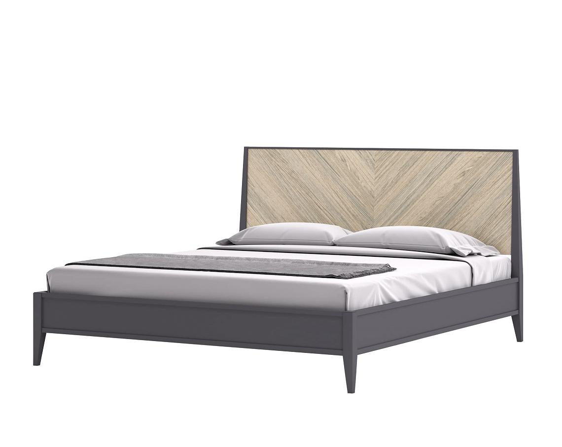 Двуспальная кровать из коллекции Тоскана от фабрики Тимбер выполнена в современном дизайне из крашенного МДФ и декорирована натуральным шпоном, который образует оригинальный узор на изголовье.