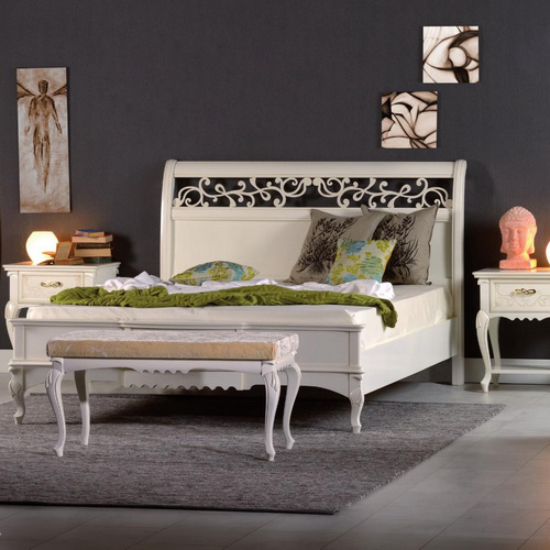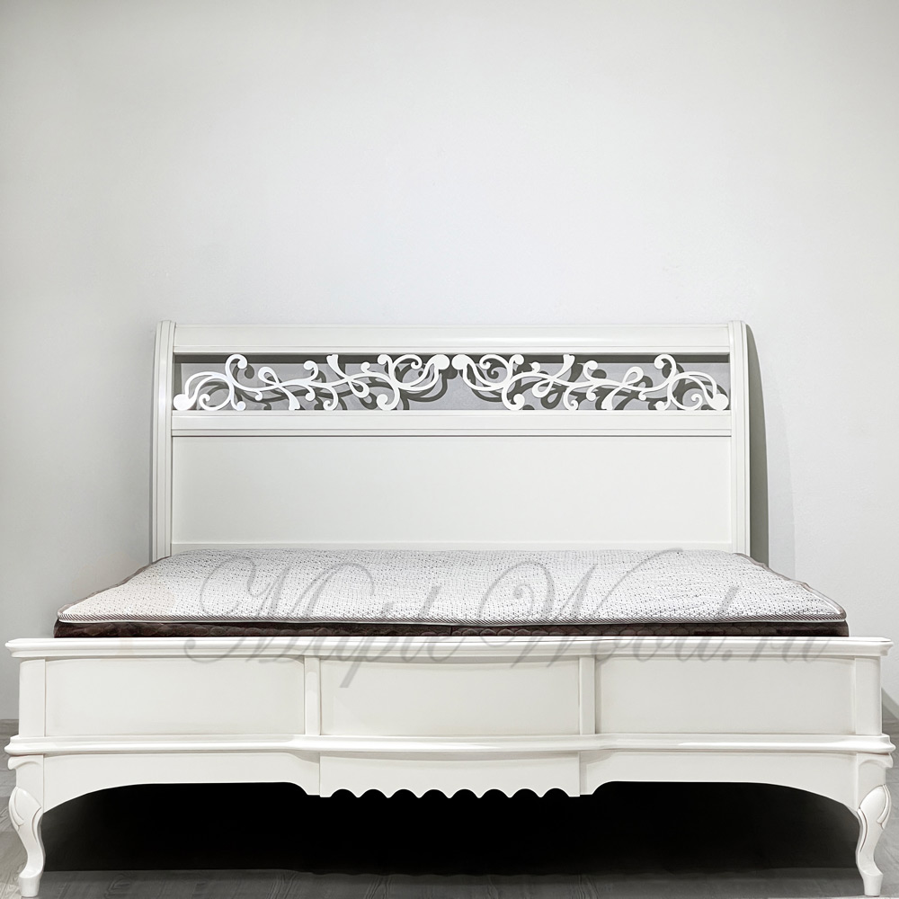 Двуспальная кровать из коллекции Маттео от фабрики Мобекс | Mobex выполнена из натурального массива дерева и имеет яркий акцент в виде прямоугольного изголовья, которое декорировано резным орнаментом и фигурные ножки, которые придают изделию легкость и воздушность.