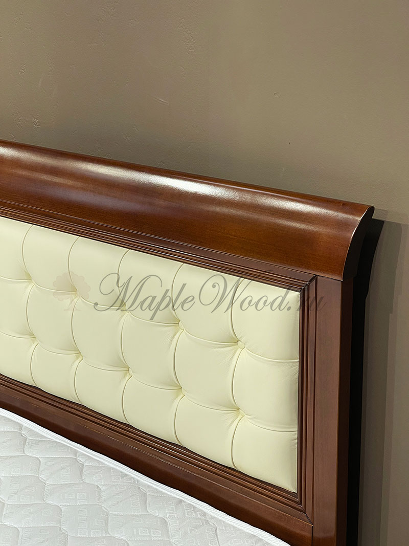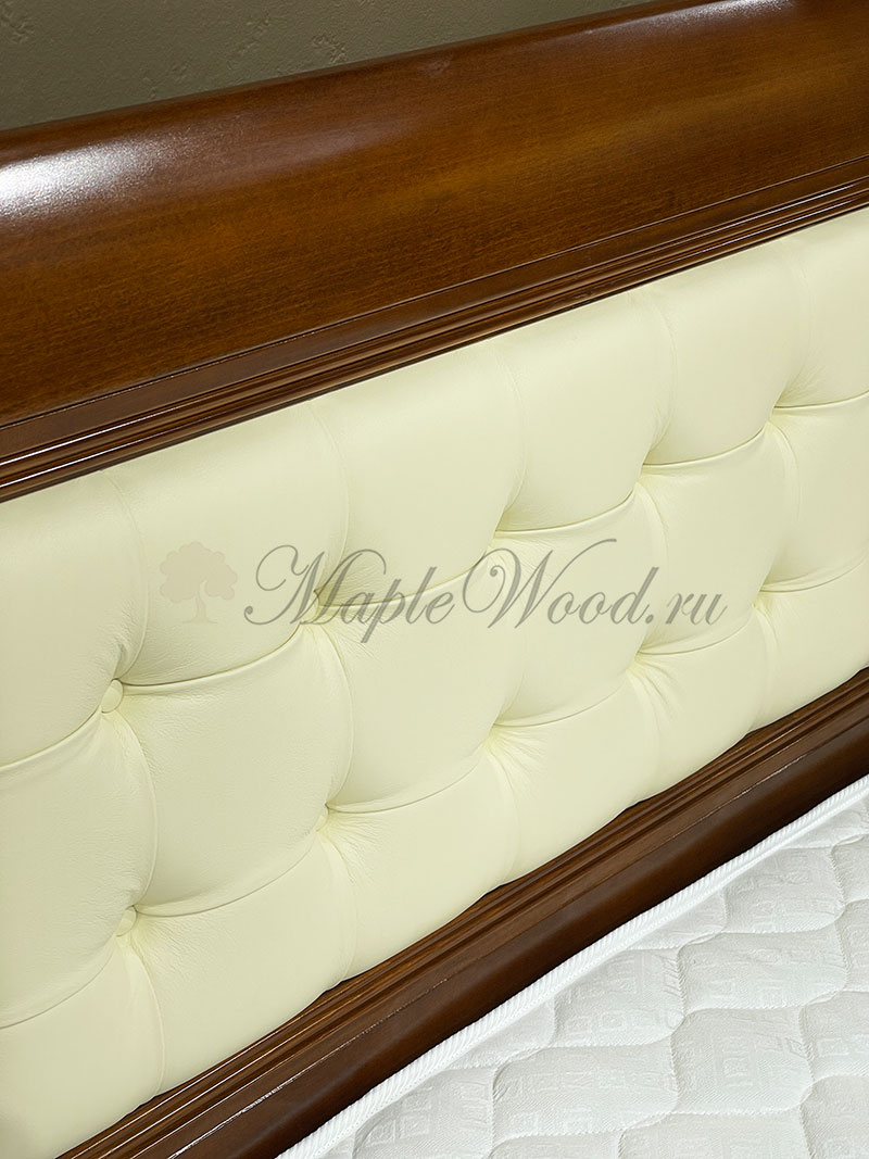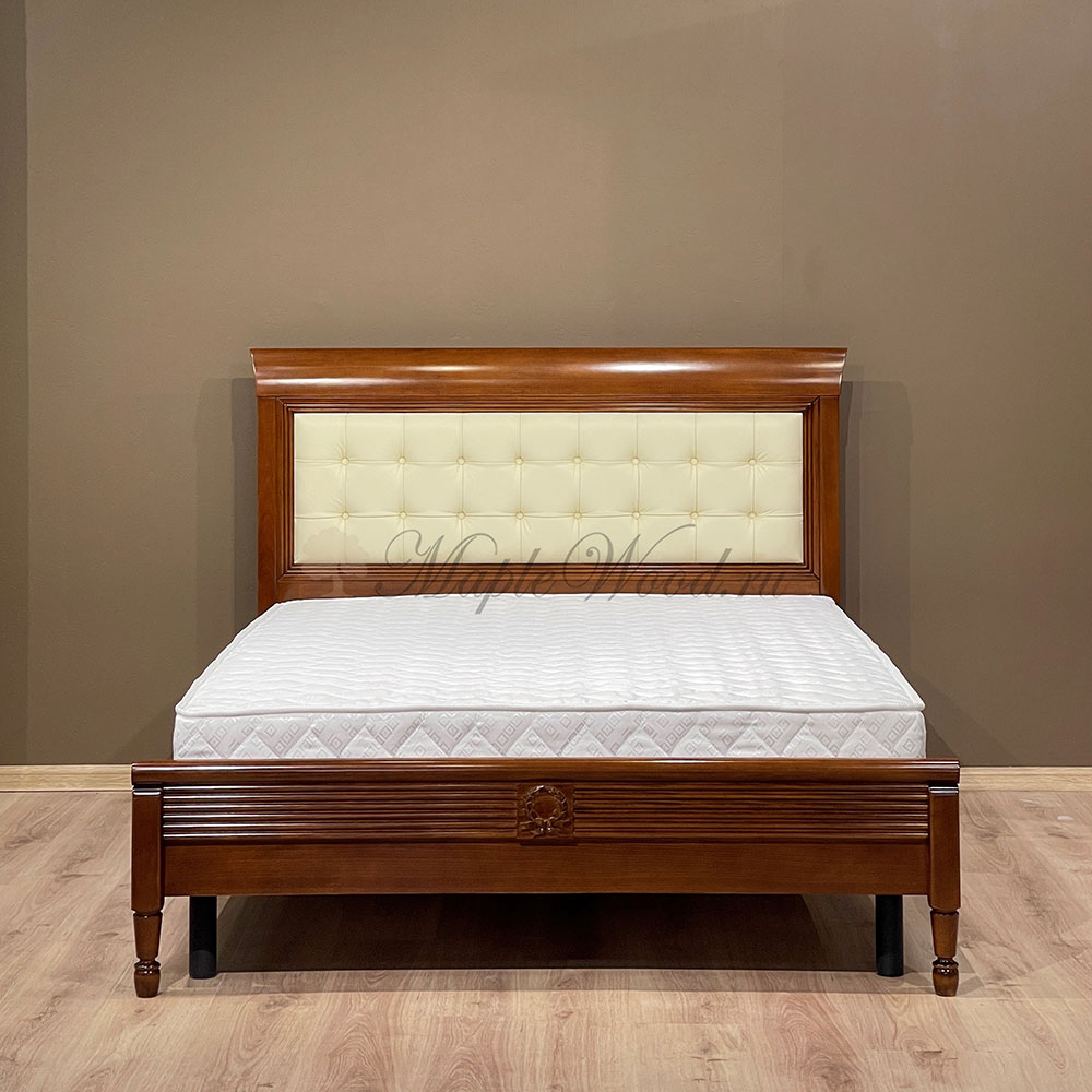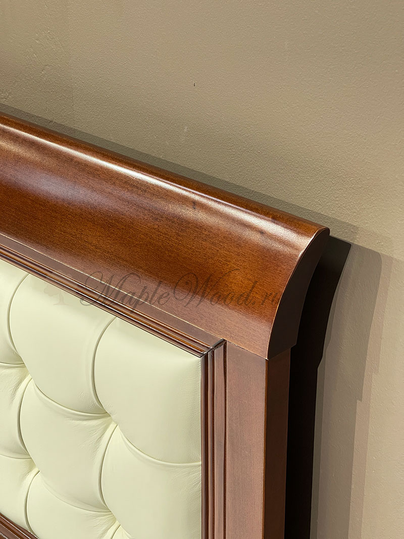 Односпальная кровать из коллекции Мария Сильва от бренда Monte Cristo Mobili - модель из массива дерева с мягким изголовьем из натуральной кожи и акцентной фрезеровкой на изножье, которая подчеркивает оригинальность изделия.