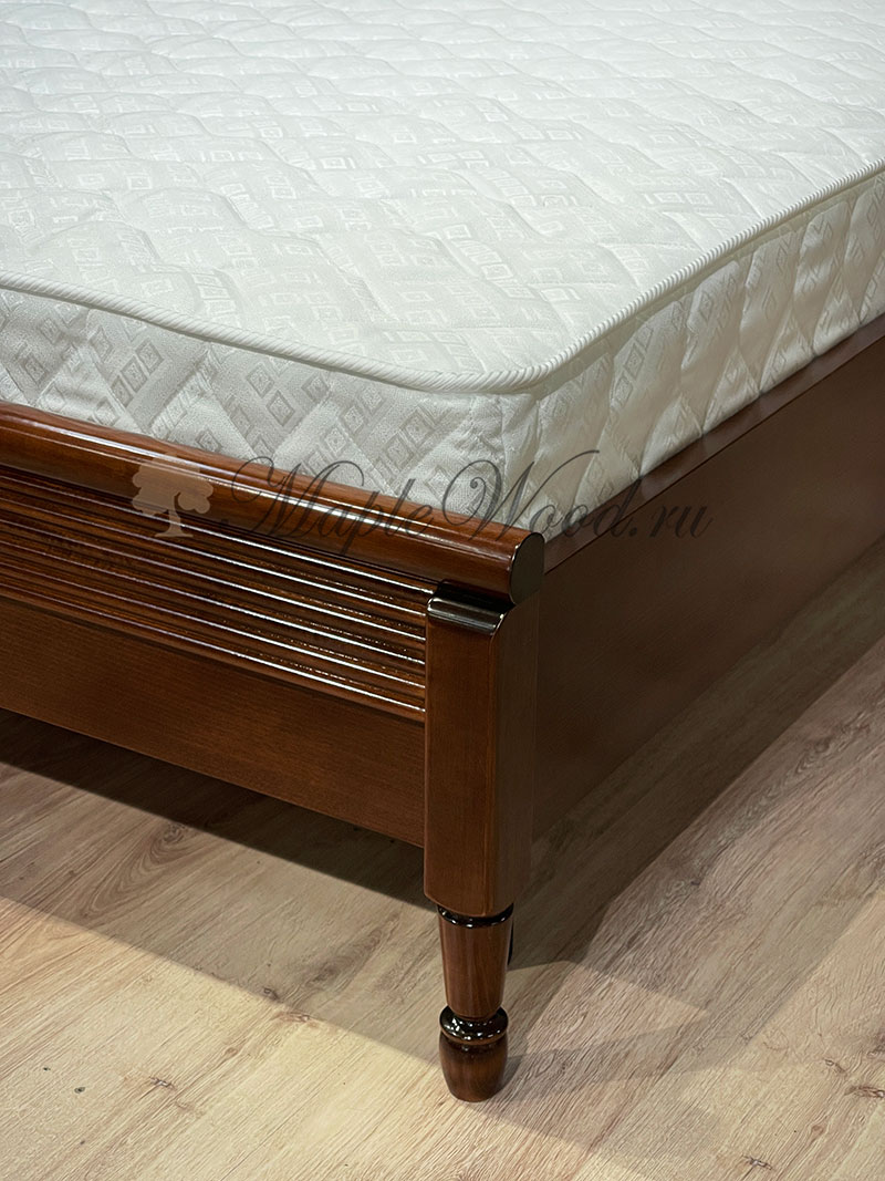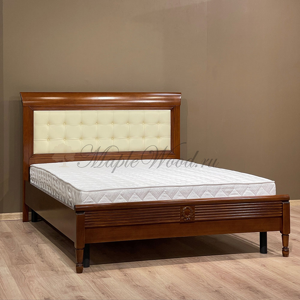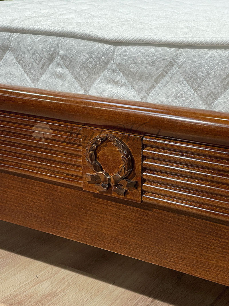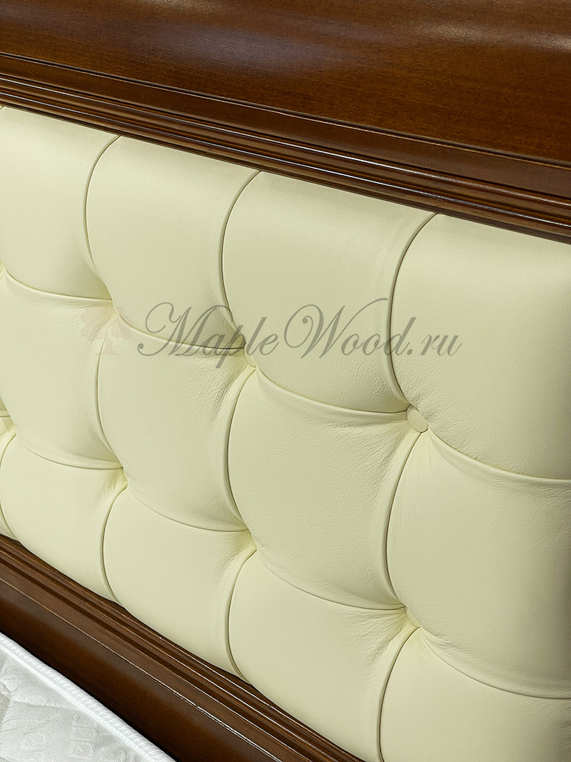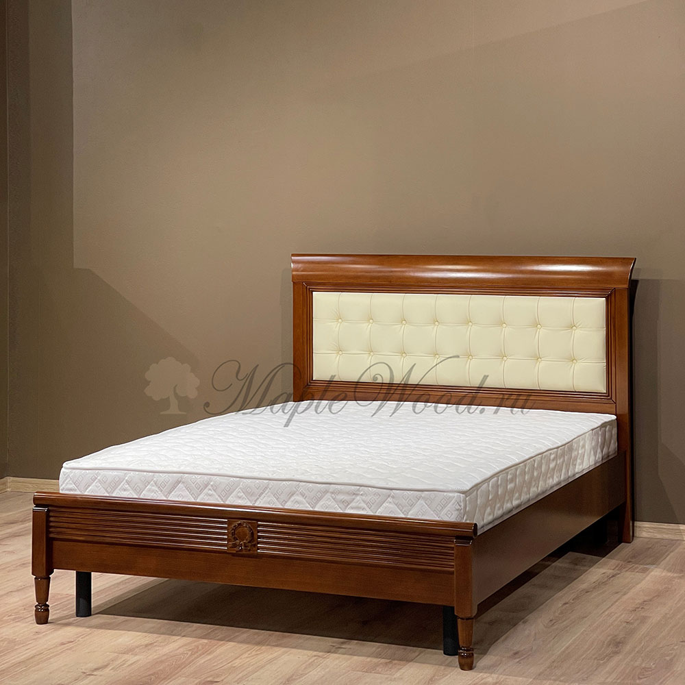 Односпальная кровать из коллекции Мария Сильва от бренда Monte Cristo Mobili - модель из массива дерева с мягким изголовьем из натуральной кожи и акцентной фрезеровкой на изножье, которая подчеркивает оригинальность изделия.