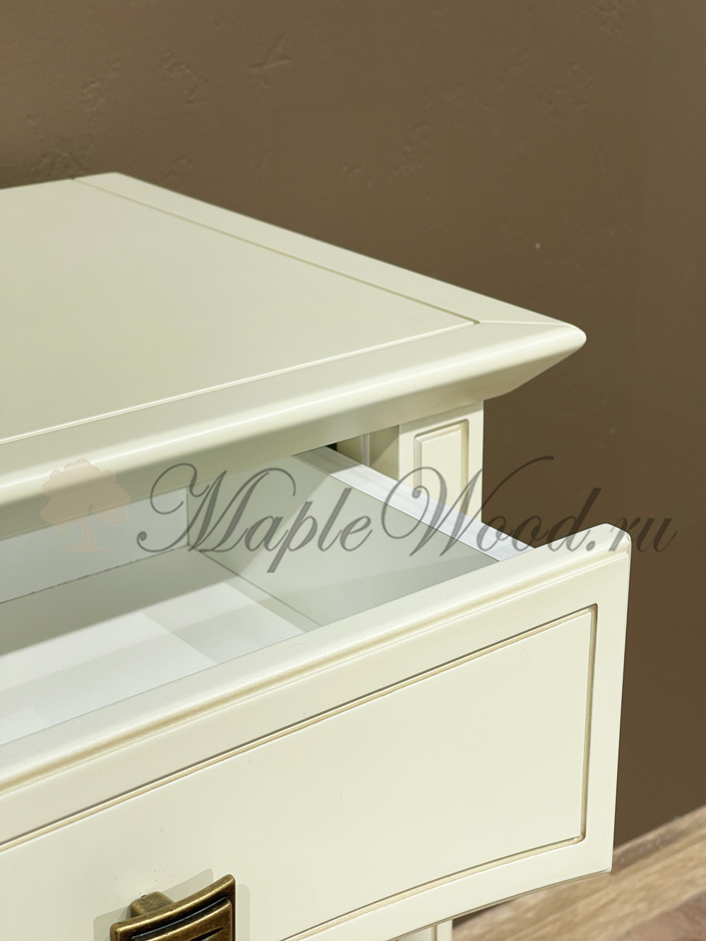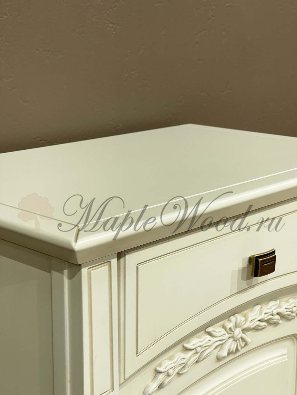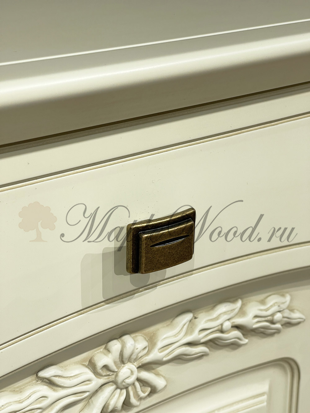 Прикроватная тумба из коллекции Анна от фабрики Мобекс | Mobex выполнена в нежном стиле прованс из натурального дерева бука в светлом оттенке слоновая кость и декорирована контрастной патиной, которая завершает дизайн изделия.