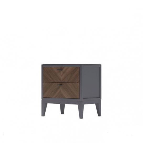 Прикроватная тумба на ножках из коллекции Тоскана от фабрики Тимбер оборудована двумя выдвижными ящиками, которые оснащены системой плавного закрывания.