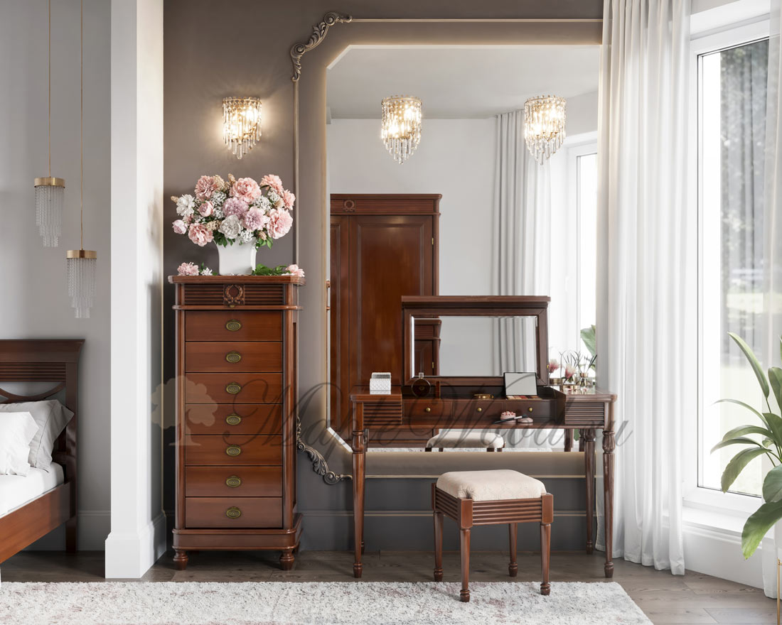 Пуф Мария Сильва от фабрики Monte Cristo Mobili станет отличным дополнением к туалетному столику из одноименной коллекции.