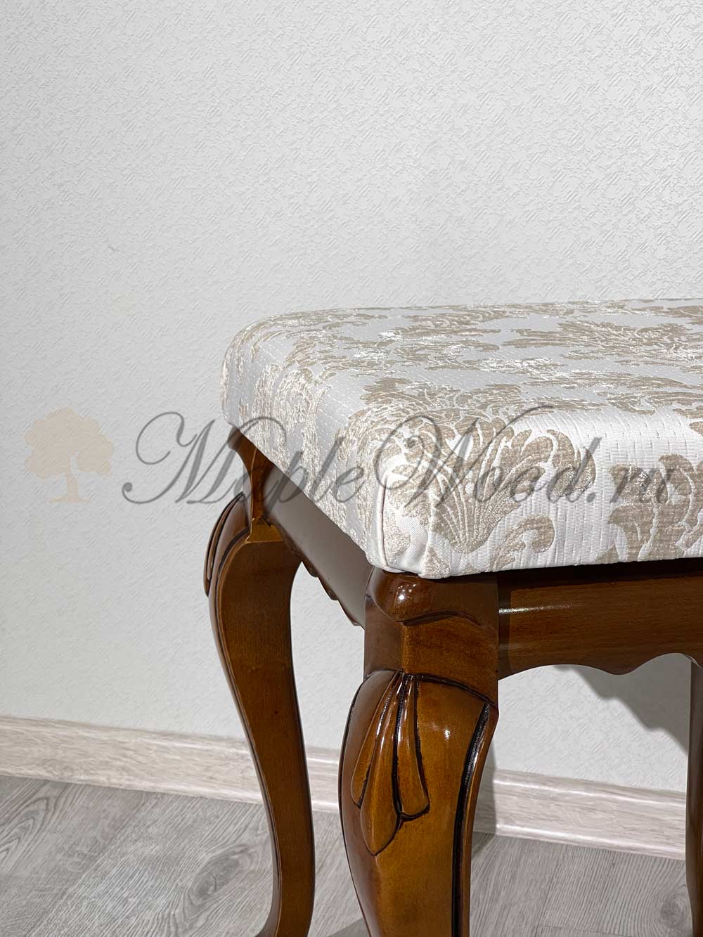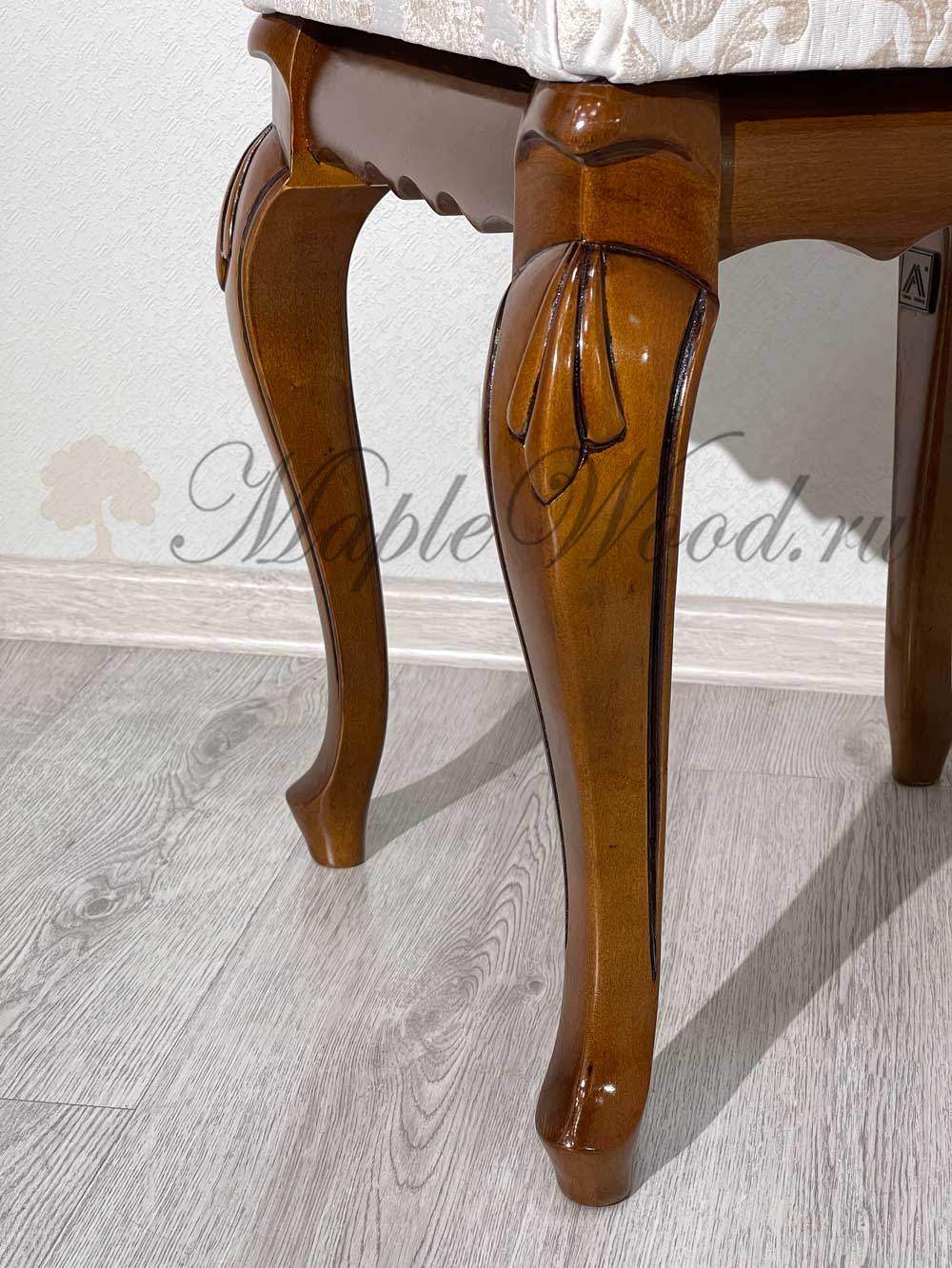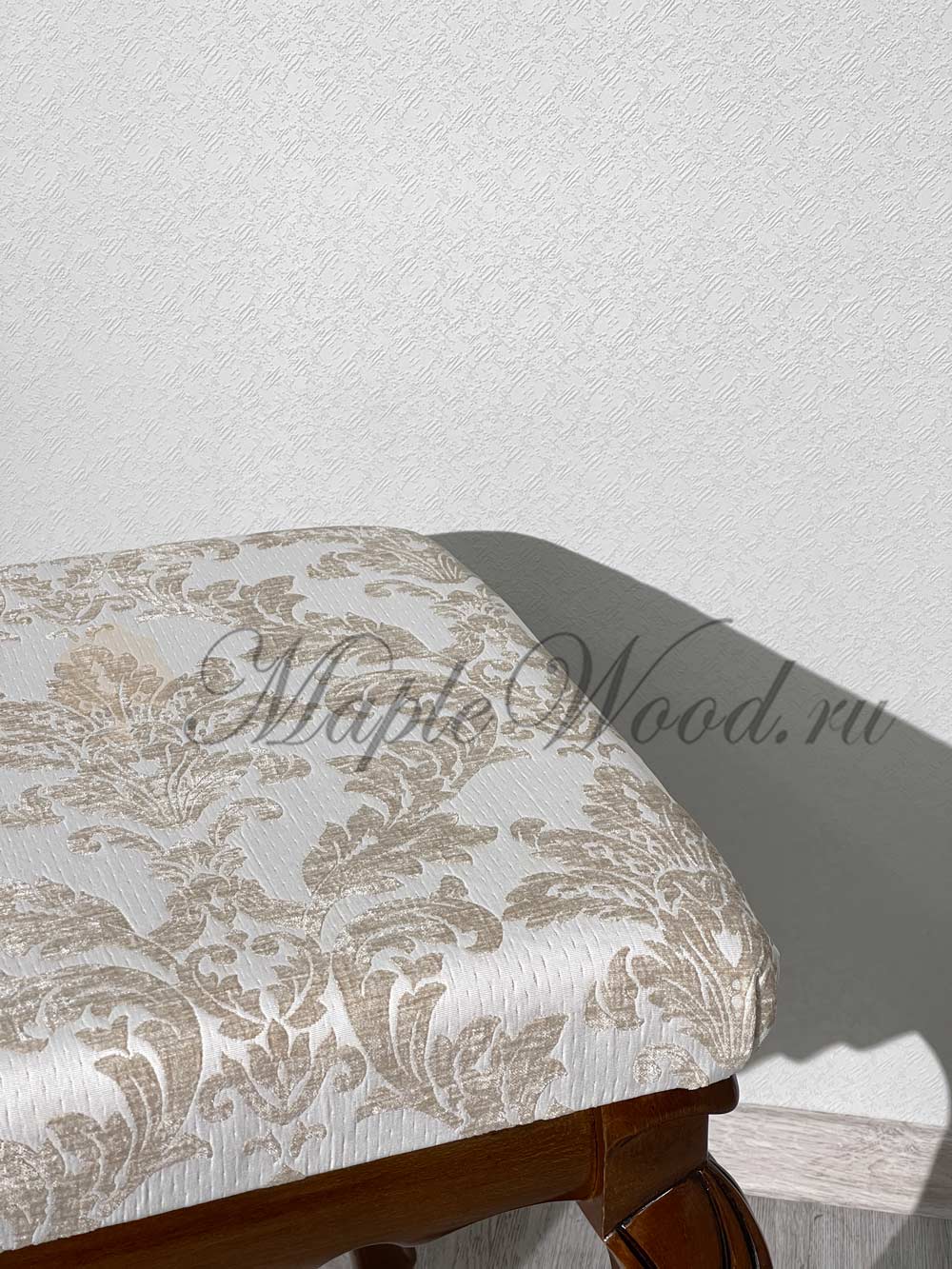 Каркас изделия изготавливается из массива дерева, а обивка сиденья на объёмном слое наполнителя предоставляется на выбор из каталога фабрики.
