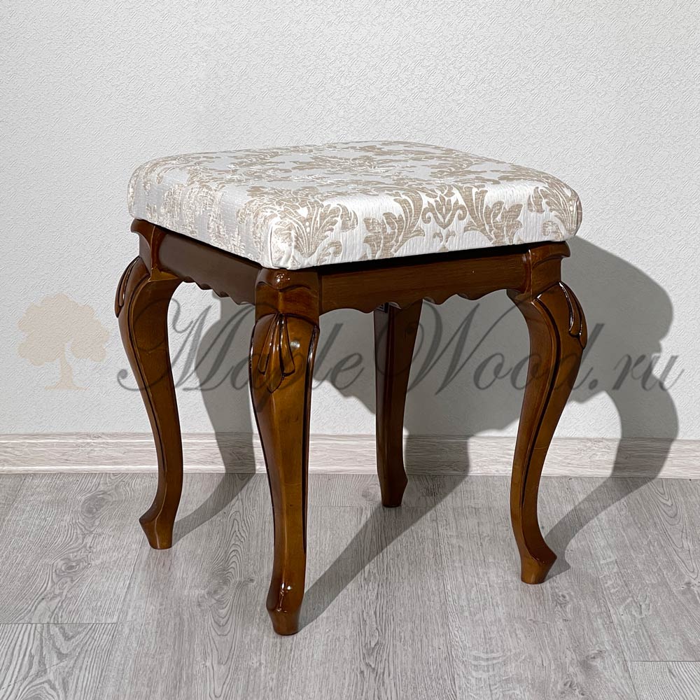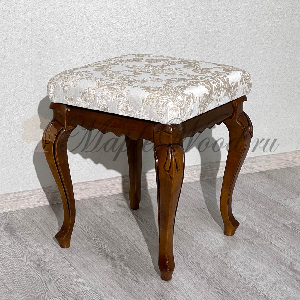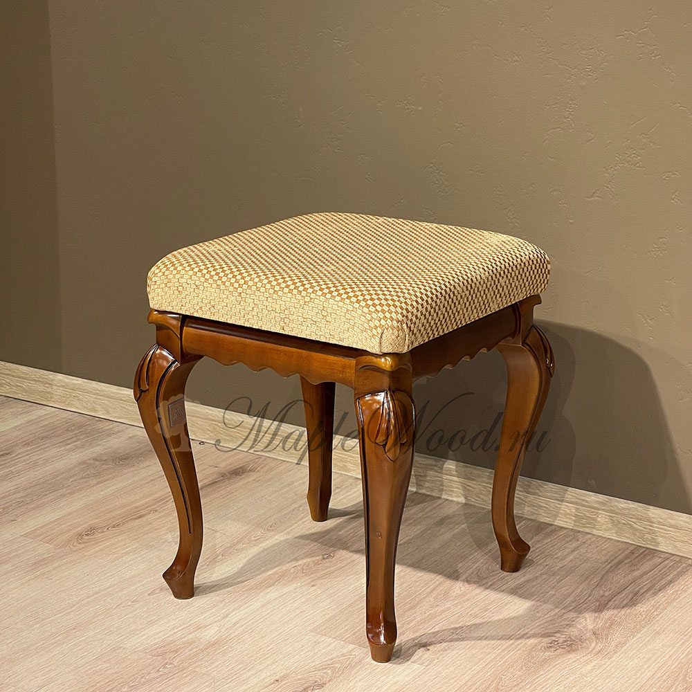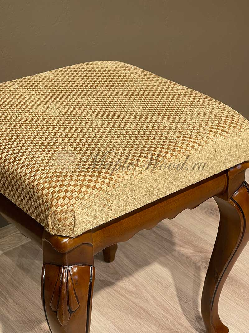 Каркас изделия изготавливается из массива дерева, а обивка сиденья на объёмном слое наполнителя предоставляется на выбор из каталога фабрики.