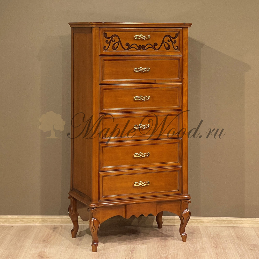 Высокий комод на изогнутых ножках из коллекции Маттео от фабрики Мобекс | Mobex подойдет для размещения в любой комнате, оформленной в классическом стиле.