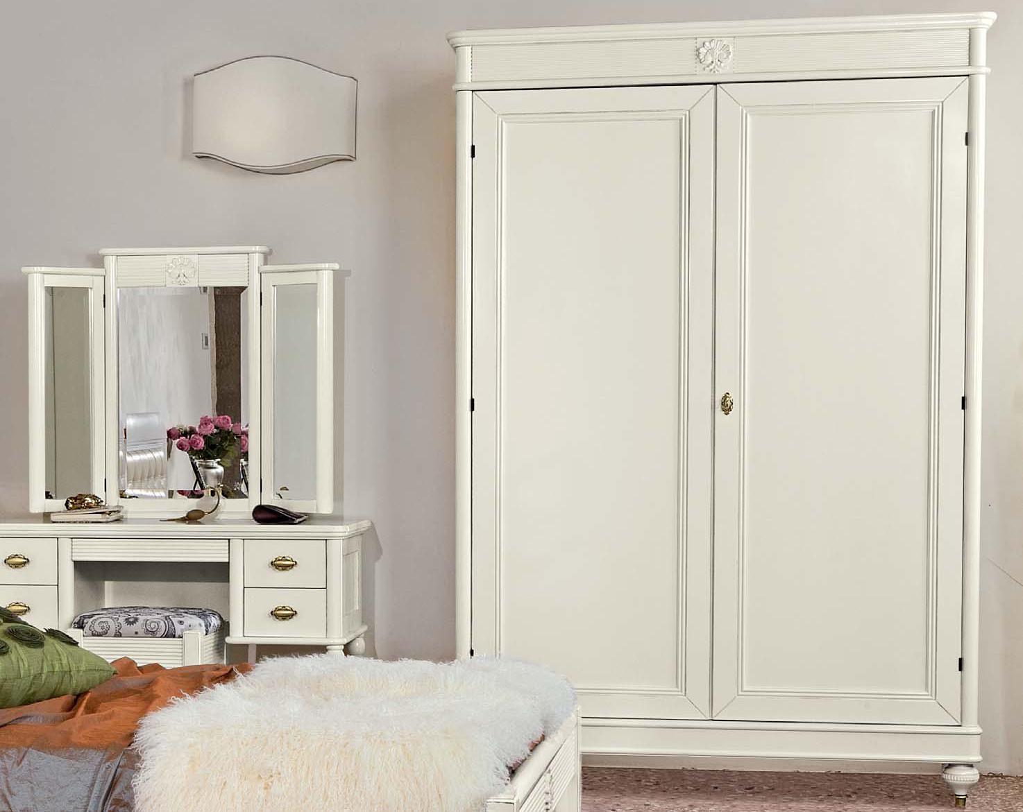 Распашной 2-х дверный шкаф от спального гарнитура Бурбон от бренда Monte Cristo Mobili выполнен в итальянском стиле из натурального массива дерева и может быть исполнен как в светлом оттенке слоновая кость, так и в других цветовых решениях из каталога фабрики.