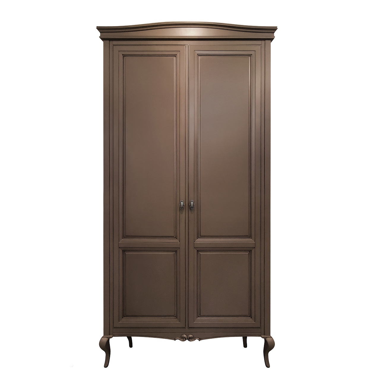 Распашной 2-х дверный шкаф в стиле неоклассика из коллекции Портофино от фабрики Тимбер выглядит лёгким и воздушным за счет своих фигурных ножек и пастельного оттенка, поэтому изделие подойдет даже в небольшую спальню, визуально увеличив в ней пространство.
