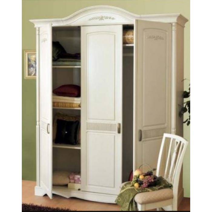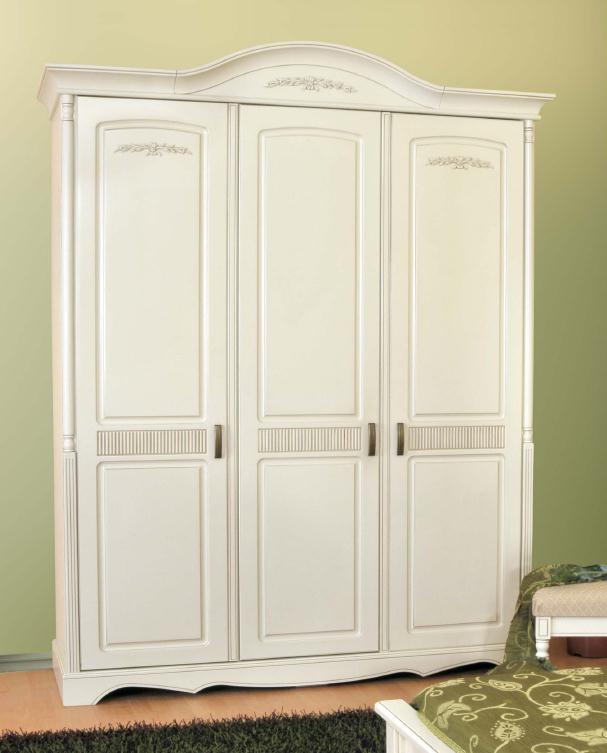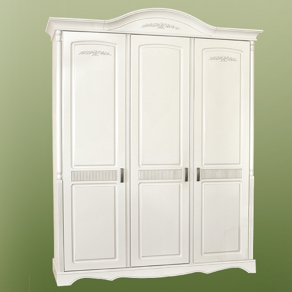 Распашной 3-х дверный шкаф из коллекции Анна от фабрики Мобекс | Mobex выполнен в нежном стиле прованс из натурального дерева бука в светлом оттенке слоновая кость и декорирован контрастной патиной, которая завершает дизайн изделия.