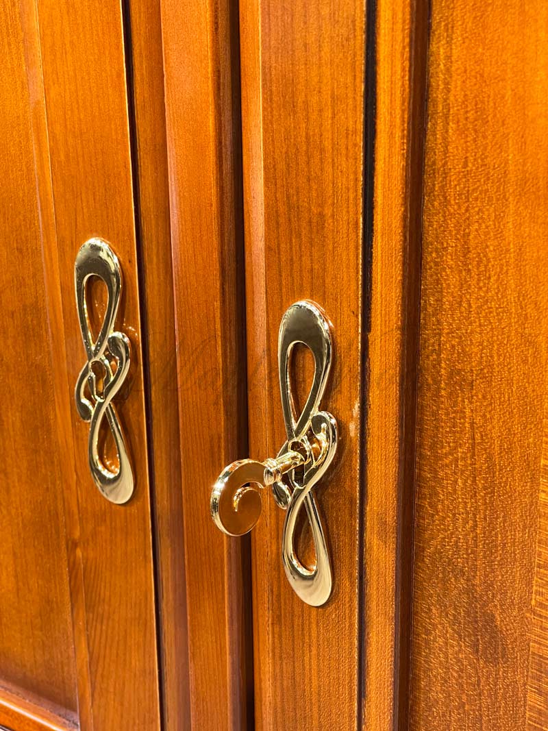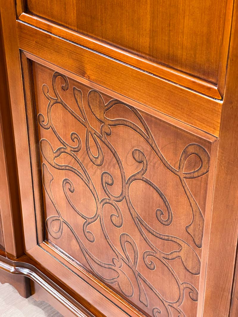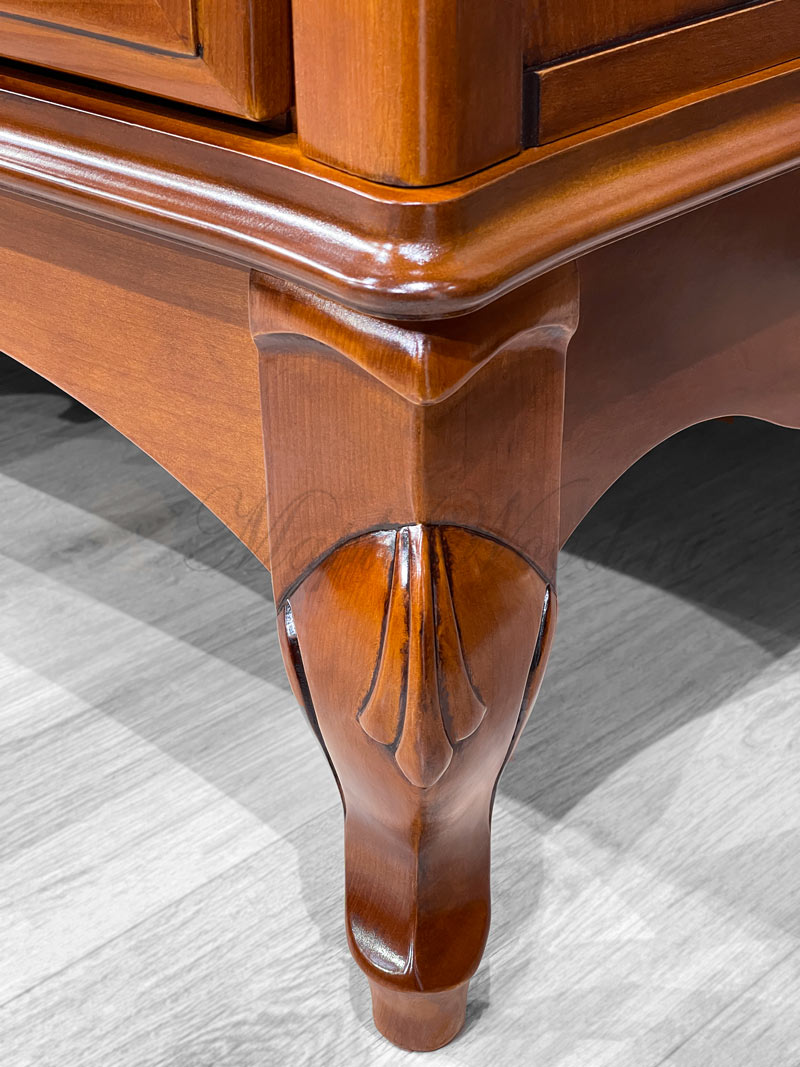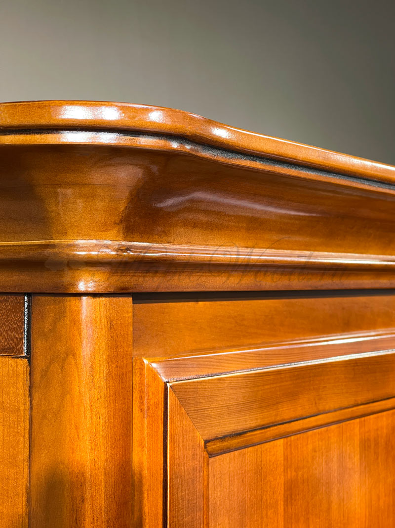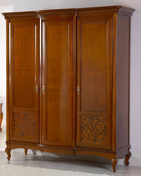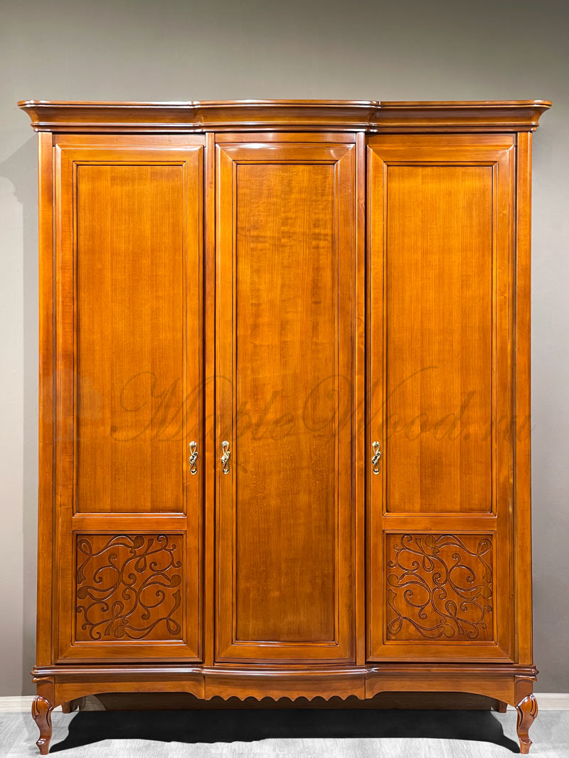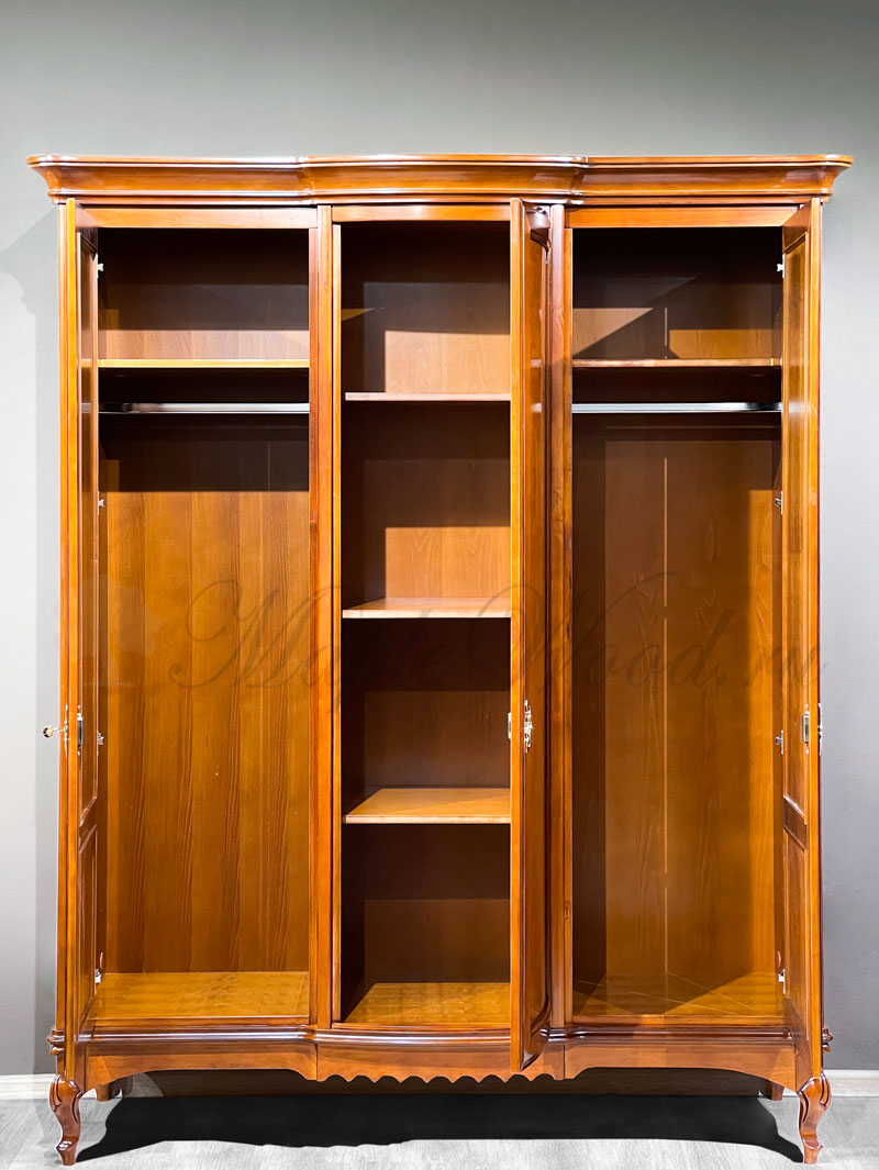 Распашной 3-х дверный шкаф от спального гарнитура Маттео от бренда Мобекс | Mobex выполнен в итальянском стиле из натурального массива дерева и может быть исполнен как в темной отделке черешня, так и в светлом оттенке слоновая кость.