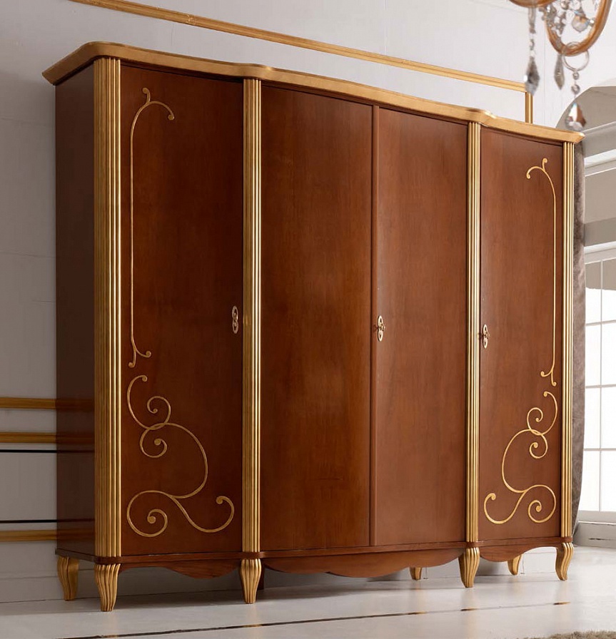 Распашной 4-х дверный шкаф из коллекции Франческо дополнит и подчеркнет классический интерьер спальни, своей пышной формой и утонченным декором.
