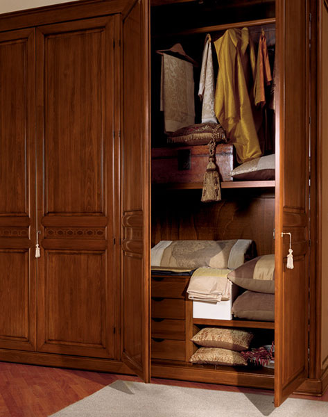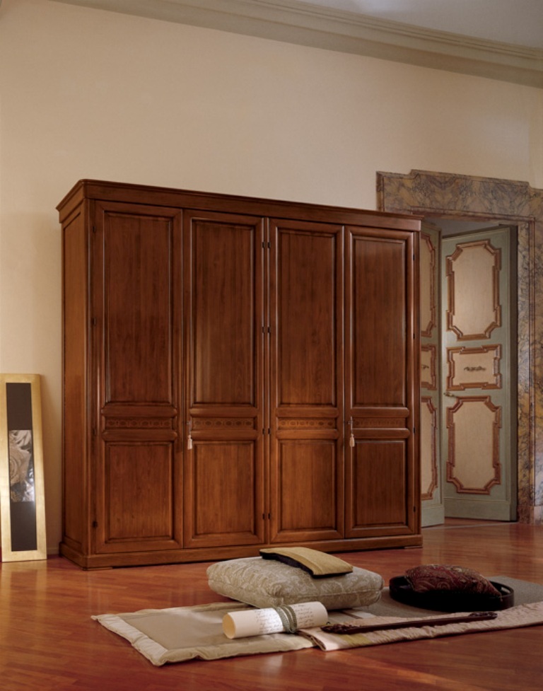 Распашной 4-х дверный шкаф для белья и одежды из коллекции Ла Скала от фабрики Монте Кристо Мобили | Monte Cristo Mobili выполнен из натурального массива дерева в неоклассическом стиле и сочетает в себе строгость и благородство дизайна без излишних декоративных украшений.