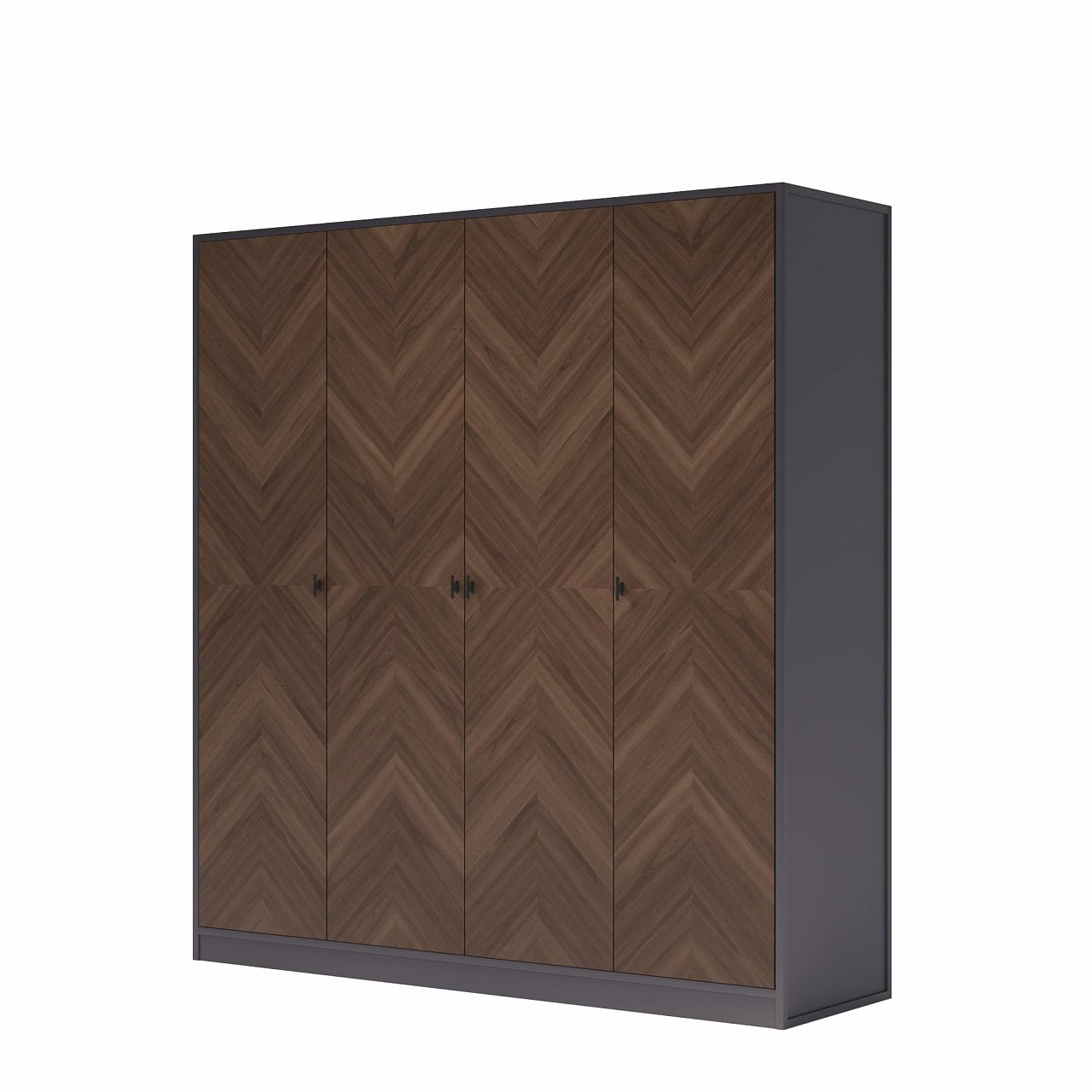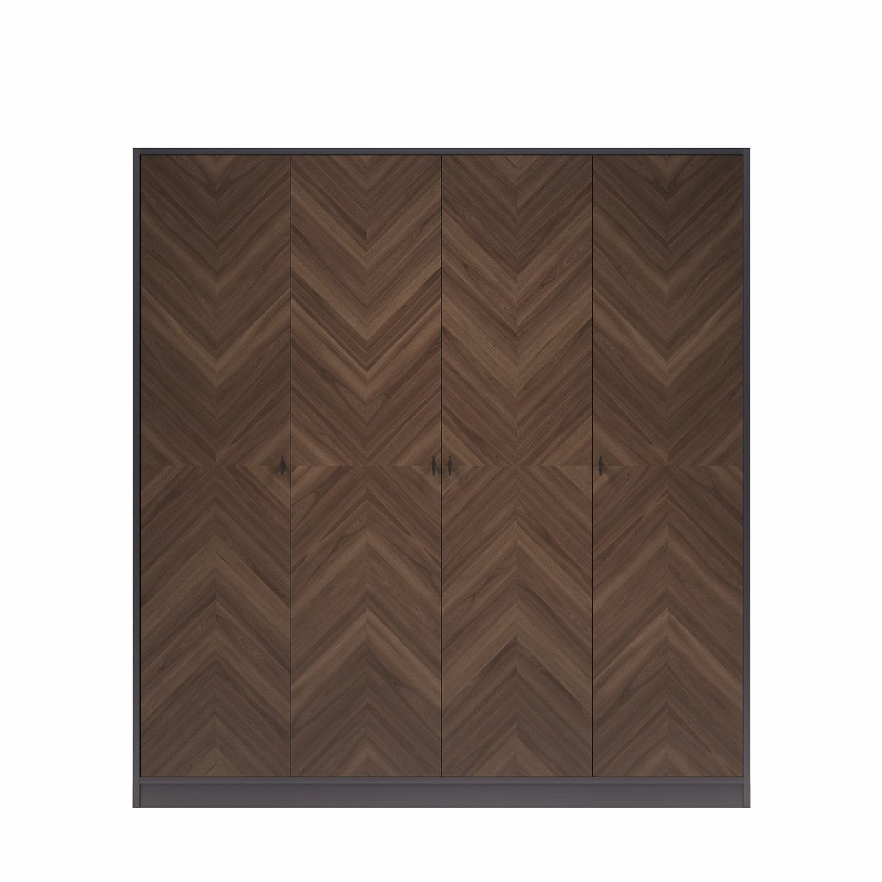 Распашной 4-х дверный шкаф из коллекции Тоскана от фабрики Тимбер выполнен в современном дизайне из крашенного МДФ, а фасад изделия инкрустирован фактурным шпоном.