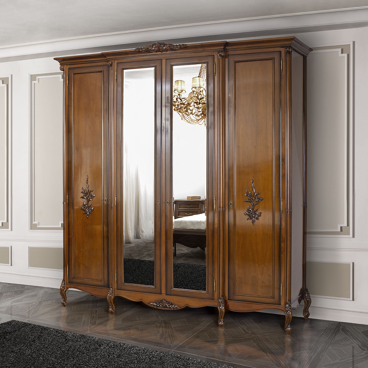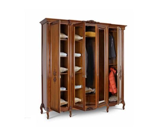 Большой 4-х дверный шкаф Жасмина от фабрики Simex - модель изогнутых ножках, выполненная в классическом стиле из натуральных материалов: массив и шпон дерева.
