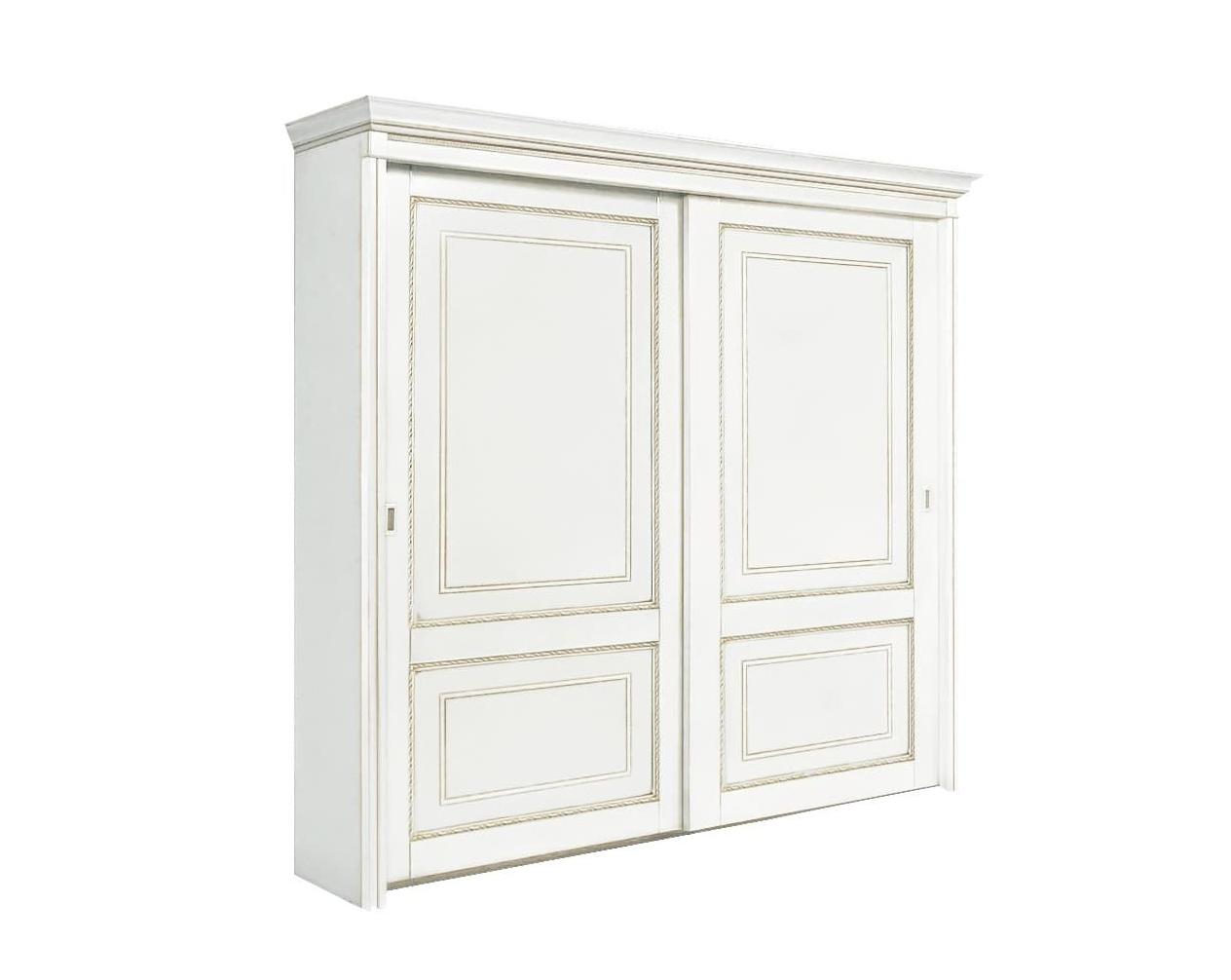 Вместительный шкаф-купе из коллекции Палермо от фабрики Тимбер выполнен в классическом дизайне из шпонированного МДФ с элементами из массива дерева и декорирован золотой патиной, которая завершает дизайн изделия.
