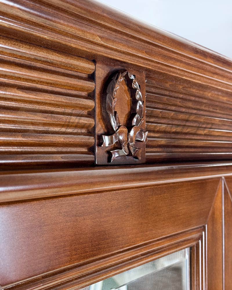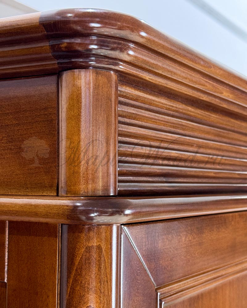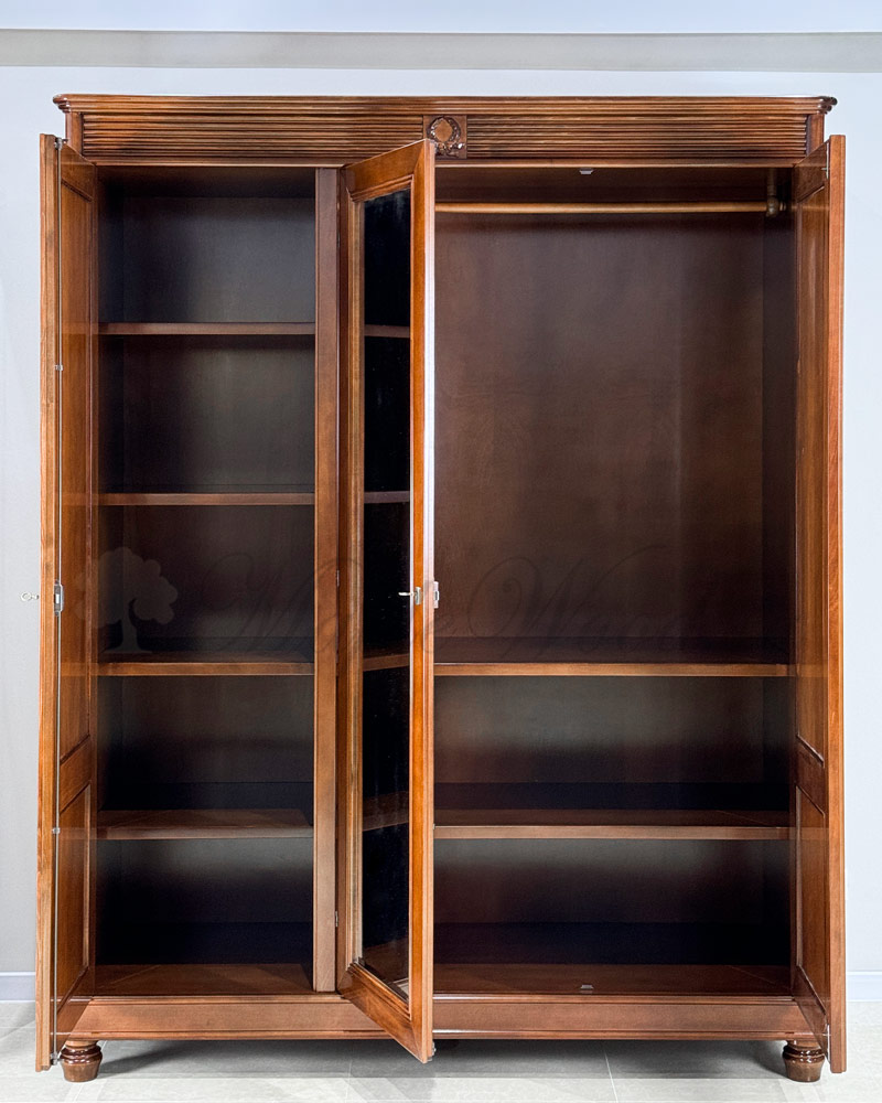 Распашной 3-х дверный шкаф с зеркальной вставкой из коллекции Мария Сильва от фабрики Monte Cristo Mobili выполнен в итальянском стиле из массива дерева и может быть исполнен как в стандартной цветовой отделке орех, так и в других цветовых решениях из каталога производителя.