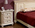 Мебель выполнена из массива дерева и декорирована контрастной патиной, которая подчеркивает резные элементы изделий.