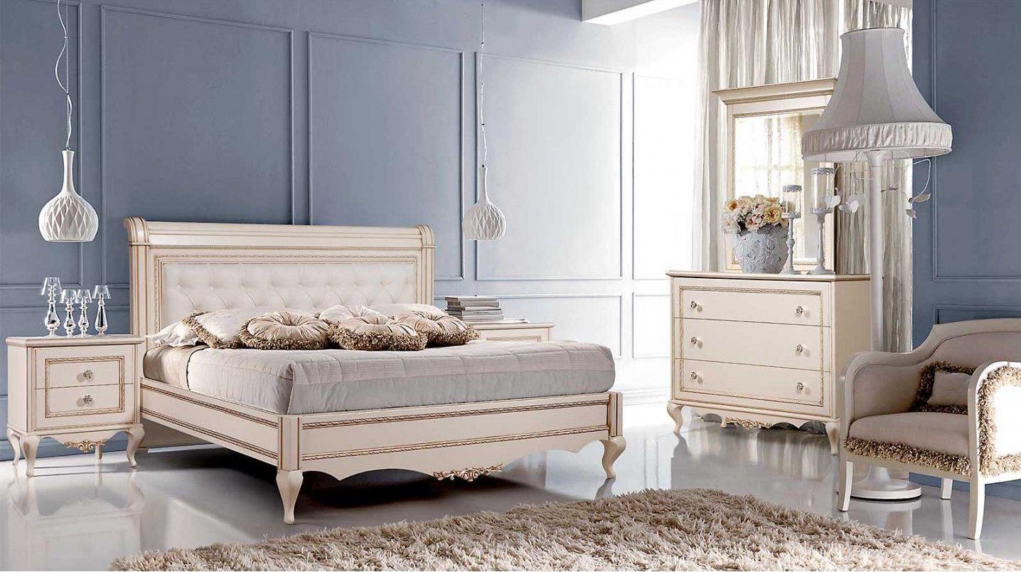 Белорусская мебель для спальни из коллекции Неаполь от бренда Тимбер выполнена в классическом стиле с использованием натуральных материалов и декорирована золотой патиной, которая завершает оригинальный дизайн изделий.