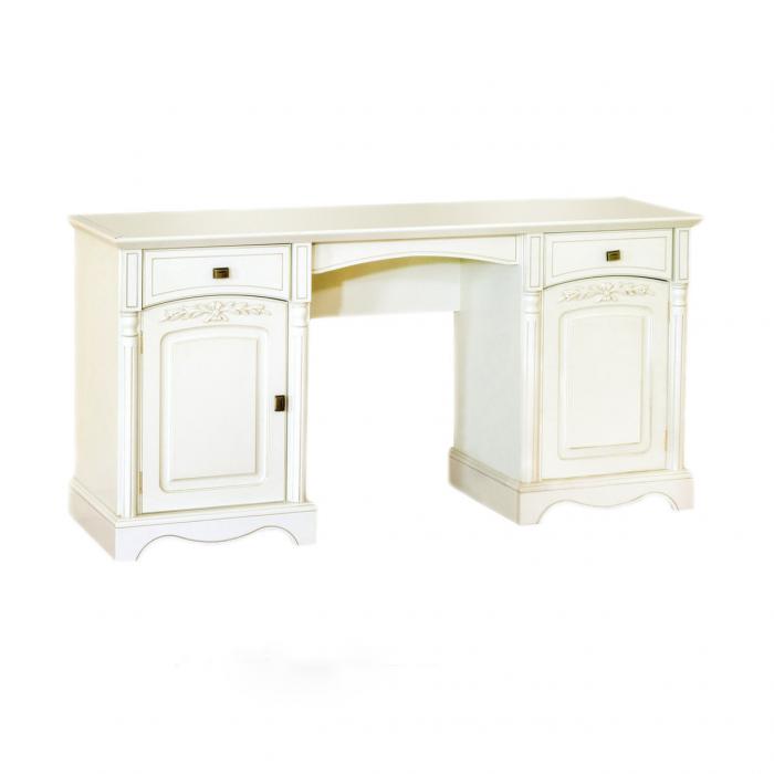 Туалетный стол из коллекции Анна от фабрики Мобекс | Mobex выполнен в нежном стиле прованс из натурального дерева бука в светлом оттенке слоновая кость и декорирован контрастной патиной, которая завершает дизайн изделия.