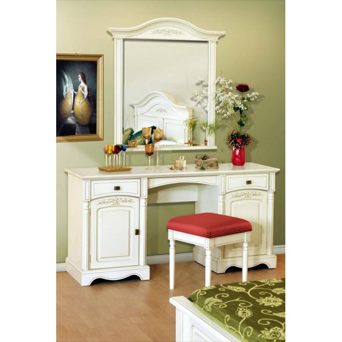 Дополнительно к столу приобретается прямоугольное зеркало в раме и пуф из одноименной коллекции.