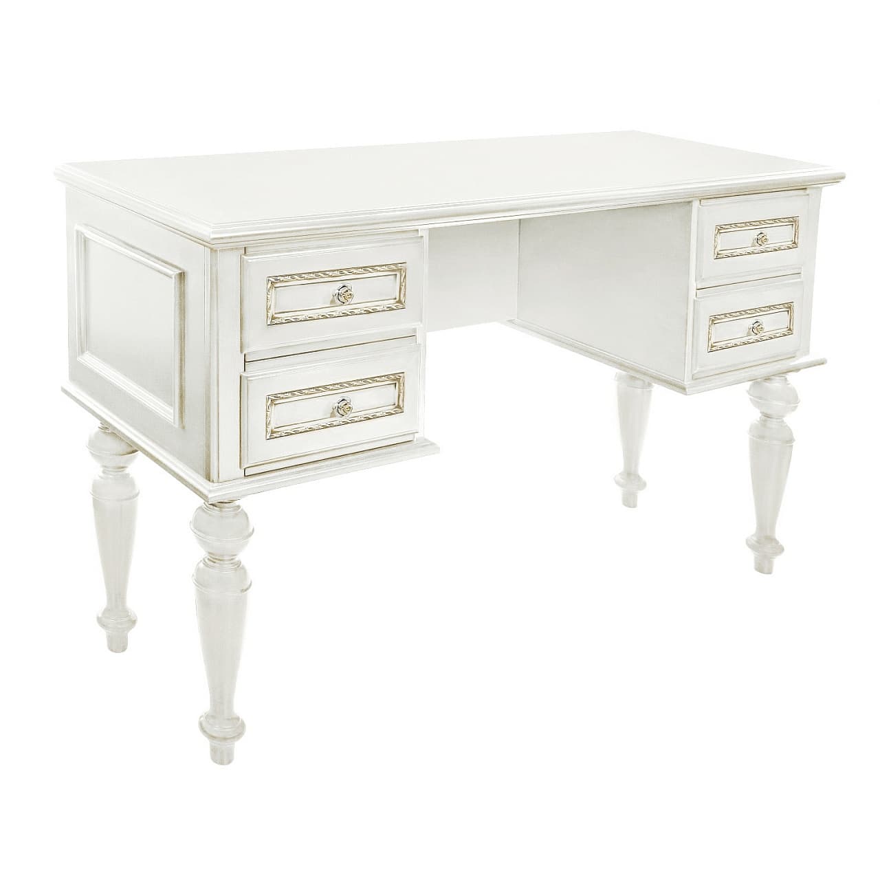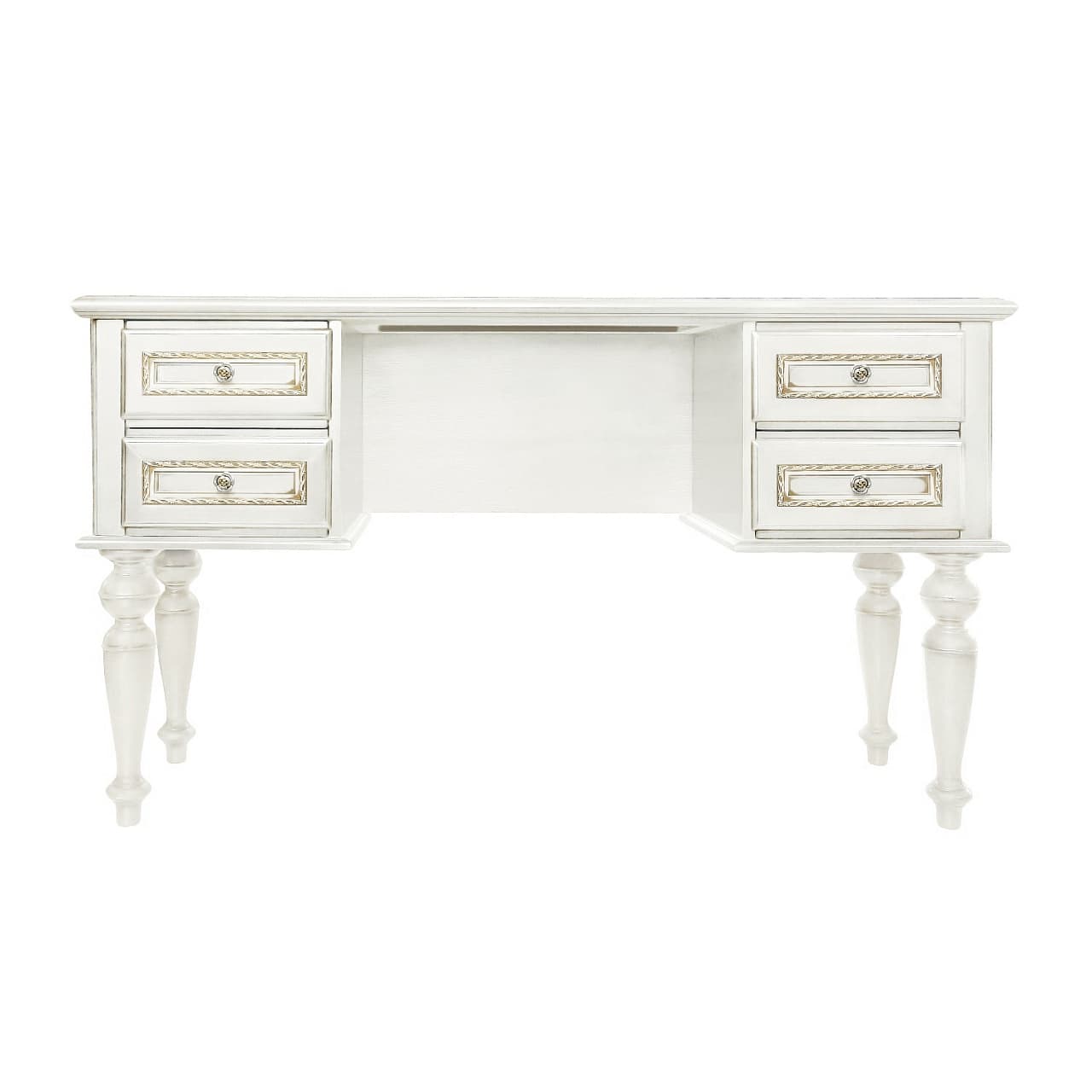 Туалетный стол из коллекции Неаполь от фабрики Тимбер выполнен в классическом стиле из шпонированного МДФ с элементами из массива дерева и декорирован контрастной патиной, которая подчеркивает акцентные детали изделия.
