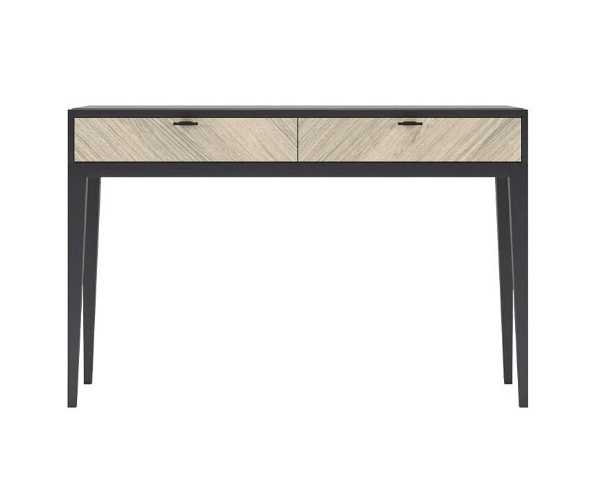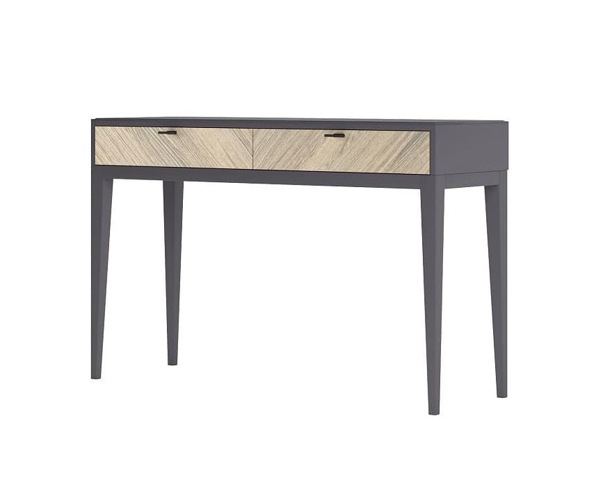 Туалетный стол для спальни из коллекции Тоскана от фабрики Тимбер выполнен в современном дизайне из крашенного МДФ, а фасад ящиков декорирован натуральным шпоном дерева, образуя оригинальный узор.