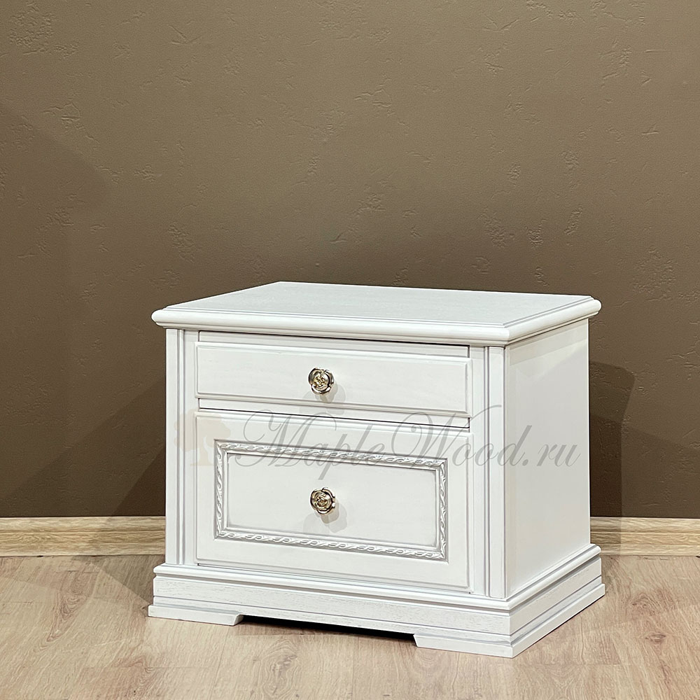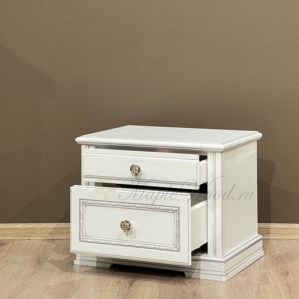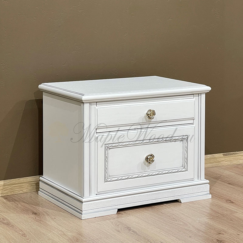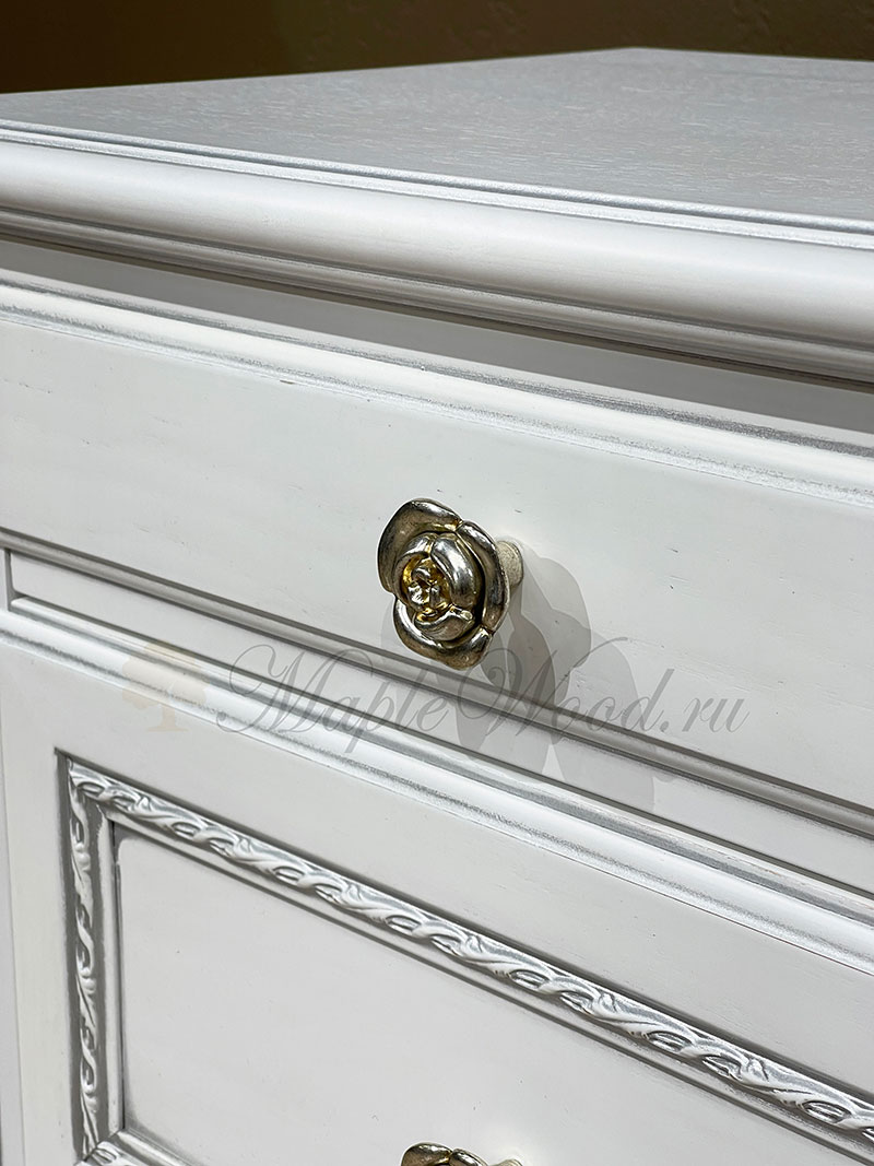 Описание Прикроватная тумба из коллекции Палермо от фабрики Тимбер выполнена в классическом стиле из шпонированного МДФ с элементами из массива дерева и декорирована серебряной патиной, которая подчеркивает акцентные детали изделия.